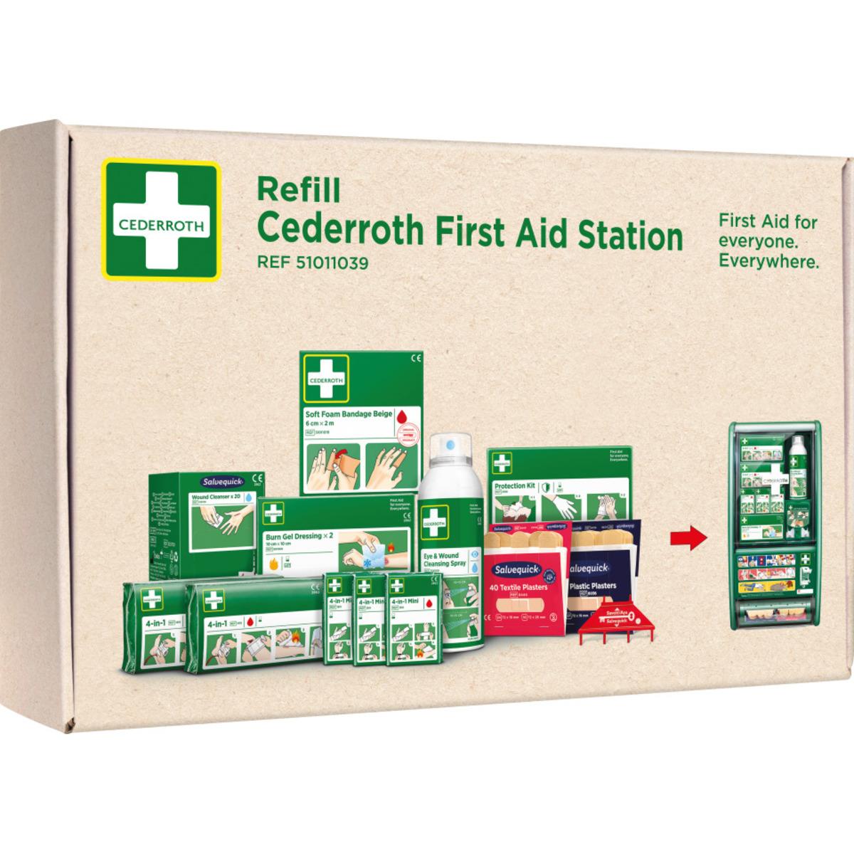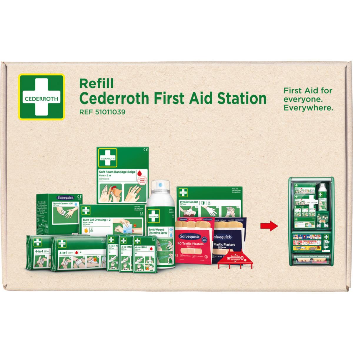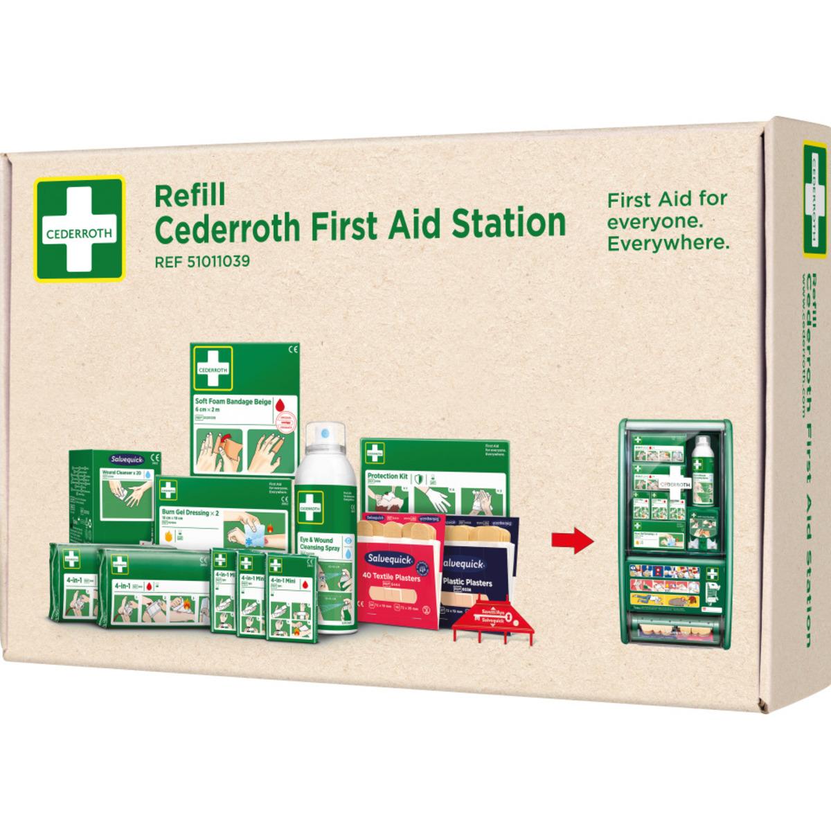 Komplettes Nachfüllpack für die Erste-Hilfe-Station von Cederroth.