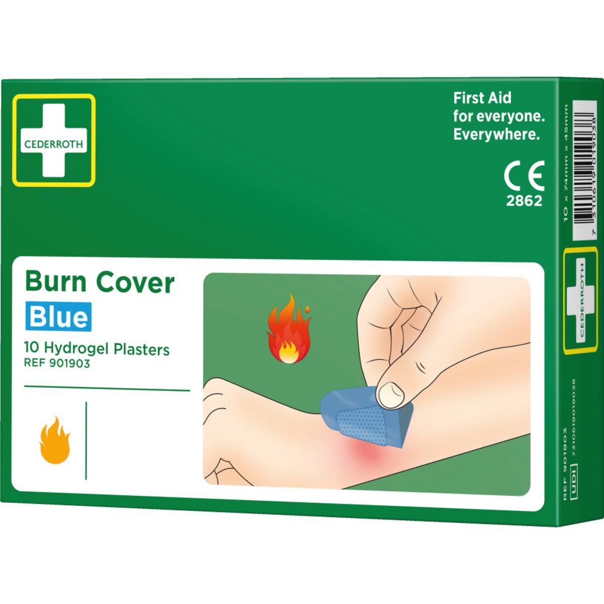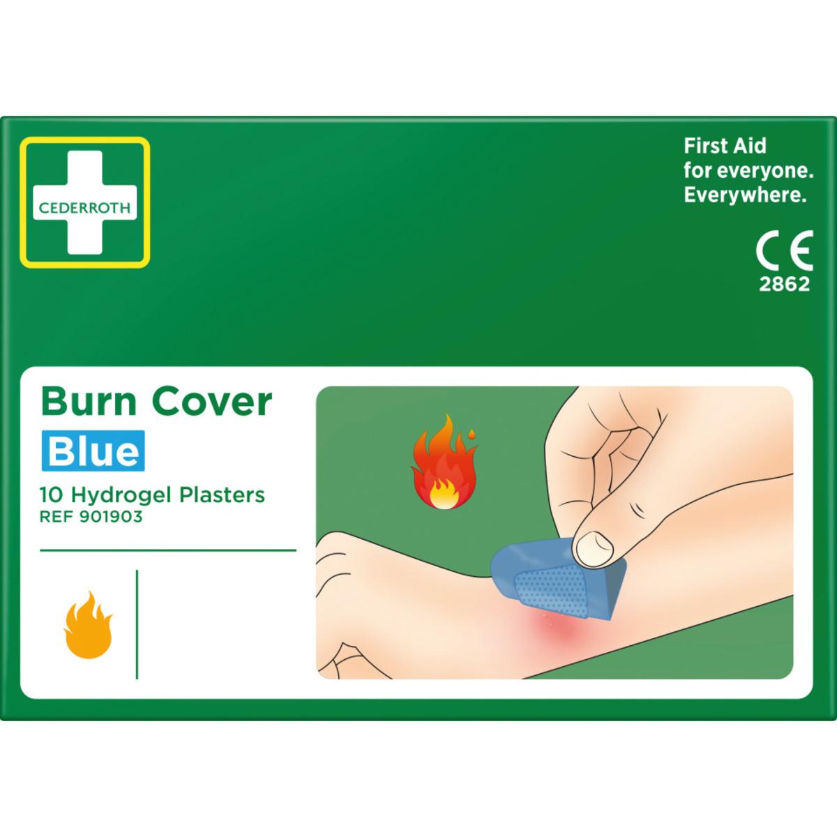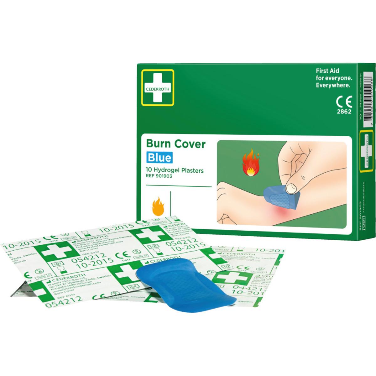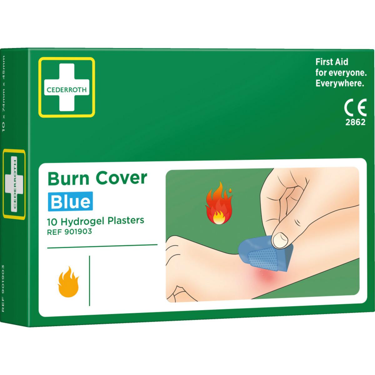CEDERROTH Pflaster-Set Burn Cover mit Hydro-Gel-Auflage für kleinere Brandverletzungen, Schnitt- oder Schürfwunden. Wirkt sofort kühlend und schmerzlindernd, sorgt für ein feuchtes Wundklima und ermöglicht eine schnellere Wundheilung, verklebt nicht mit der Wunde, optisch detektierbar, dadurch ideal auch für den Einsatz in Küchen und Lebensmittel verarbeitenden Betrieben.