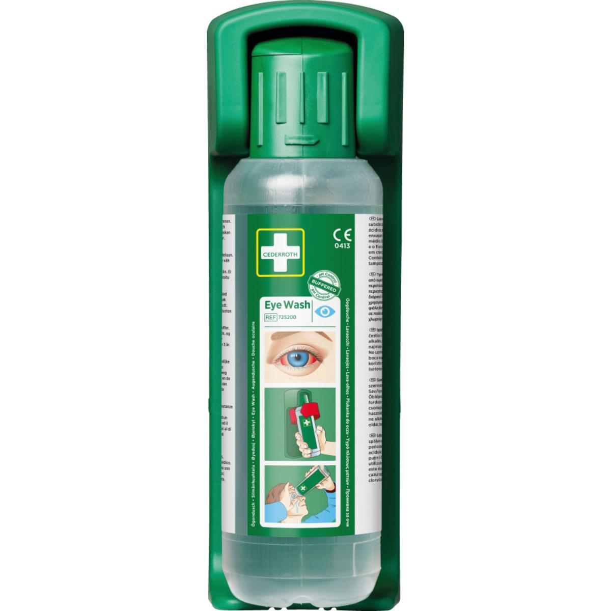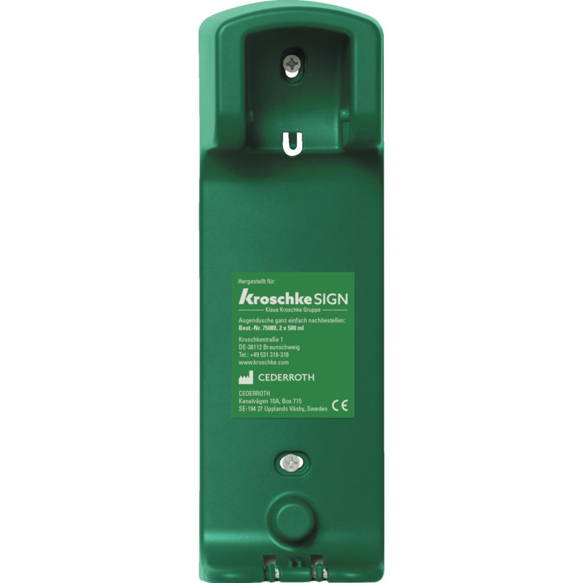 CEDERROTH Wandhalterung für die Augendusche 500 ml. Die Flaschen sind arretiert und werden bei der Entnahme aus der Wandhalterung automatisch geöffnet.