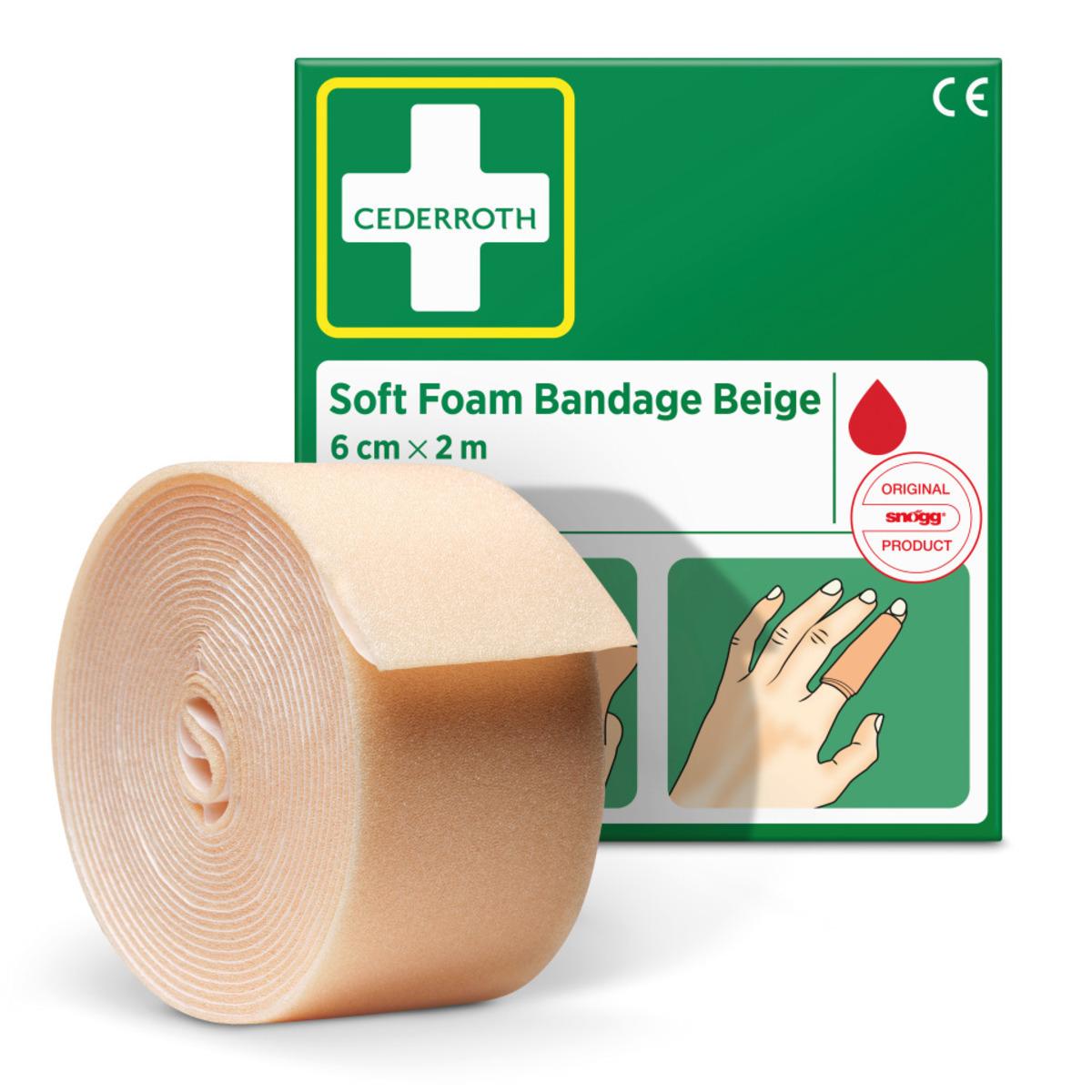 Elastische, selbstklebende CEDERROTH Soft Foam Bandage zum Einsatz auf kleineren Wunden. Haftet nicht auf der Wunde oder Haut, verliert seine Hafteigenschaften nicht im Wasser, kann auch zusammen mit Salben oder Cremes verwendet werden. Zum einmaligen Gebrauch.