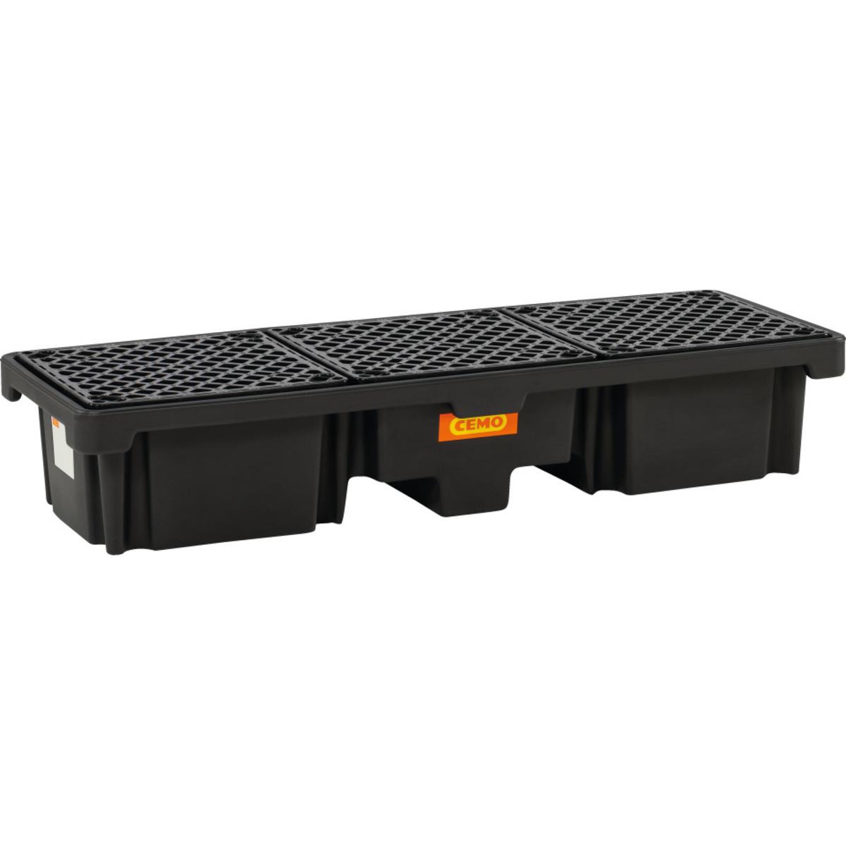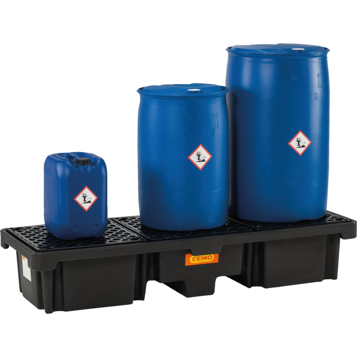 CEMO PE-Fassauffangwanne mit hoher chemischer Beständigkeit zur sachgerechten Lagerung von Gefahrstoffen in Fässern, Wanne kann direkt auf dem Boden aufgestellt werden, zweiseitig unterfahrbar und dadurch mit Hubwagen oder Stapler transportierfähig