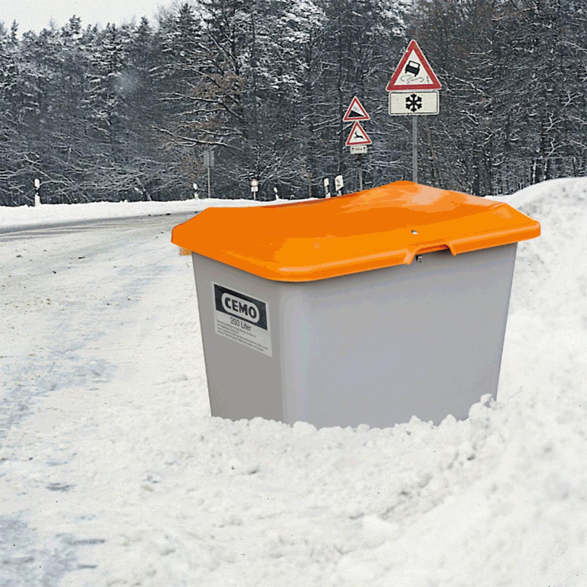Auswahl: CEMO Streugutbehälter Plus3, ohne Entnahmeöffnung, grau/orange, Kunststoff, 200 l