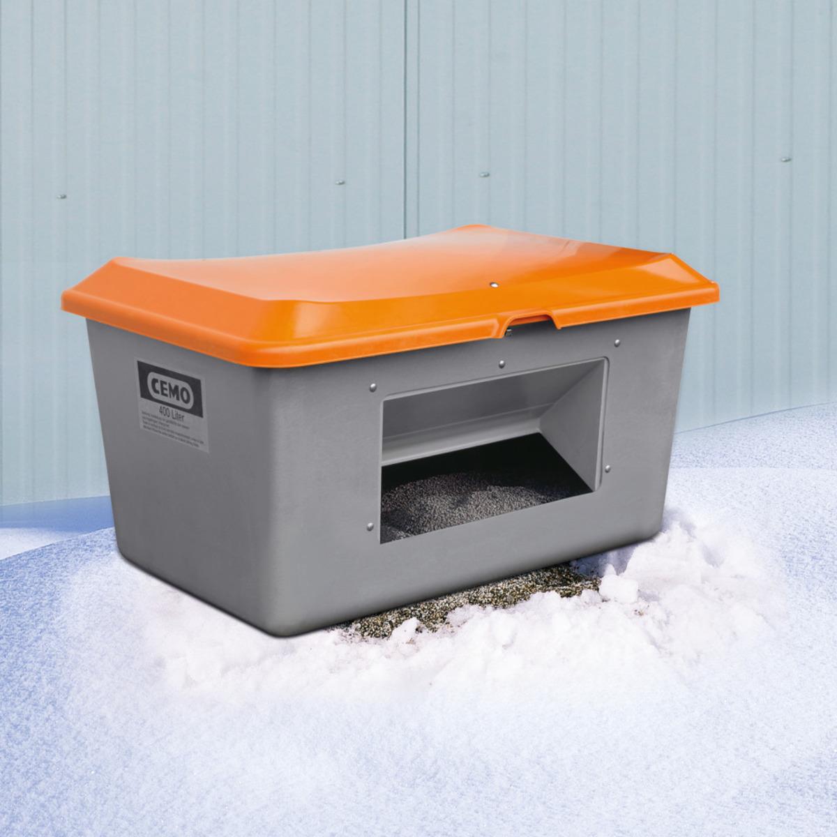 Auswahl: CEMO Streugutbehälter Plus3, mit Entnahmeöffnung, grau/orange, Kunststoff, 200 l