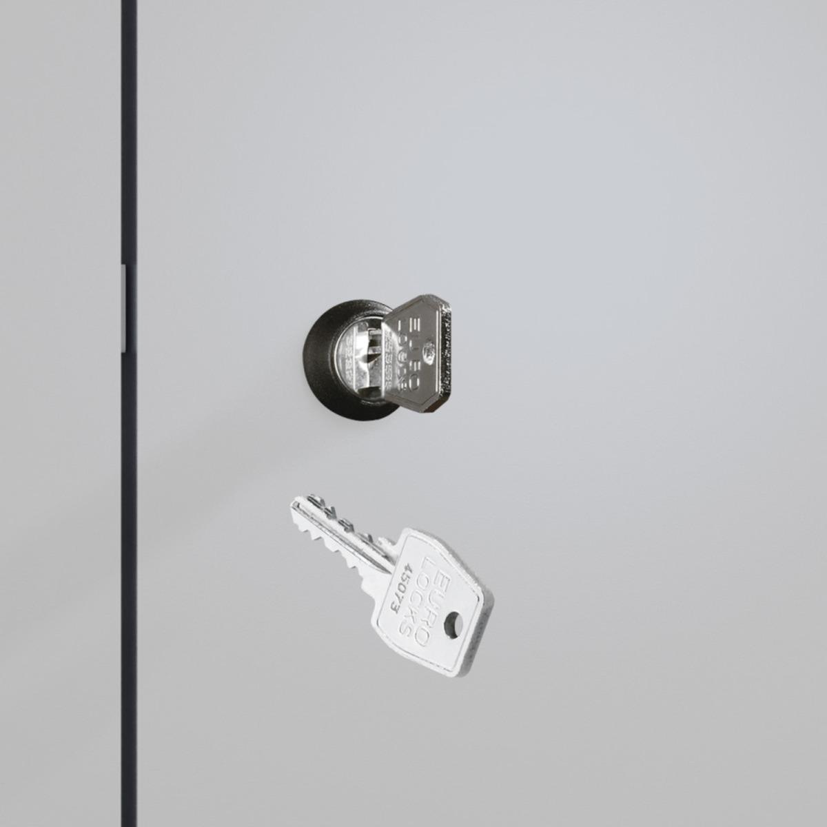 C+P Spind Basis PLUS mit Drehriegel, 2 Abteile, Abteilbreite 300 mm, je Abteil 1 Ablagebogen und 1 stabile Garderobenstange aus Ovalprofil mit 2 verdrehsicheren Schiebehaken, mit Kunststoffgleitern, Türen mit Soft-Anschlag und geschlossenen Seitenprofilen, Lüftungsschlitze oben und unten, Aufhängung in stabilen Drehbolzen, Kunststoff-Etikettenrahmen.