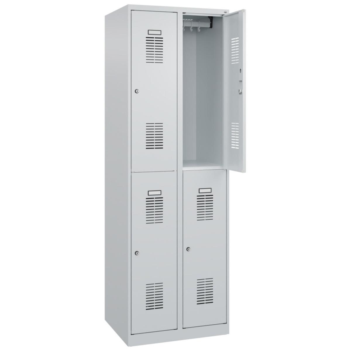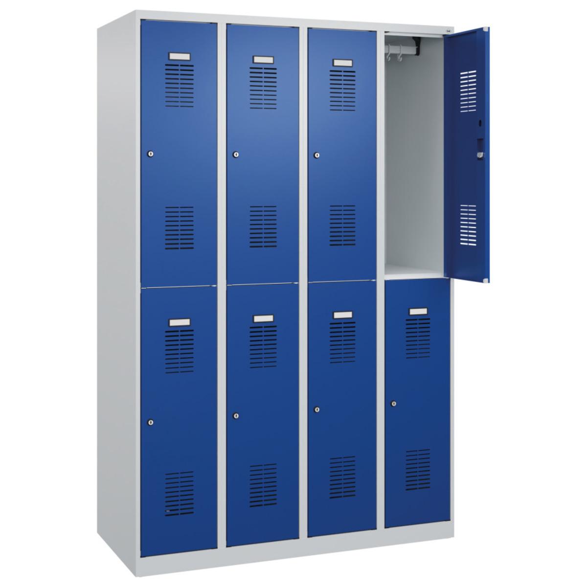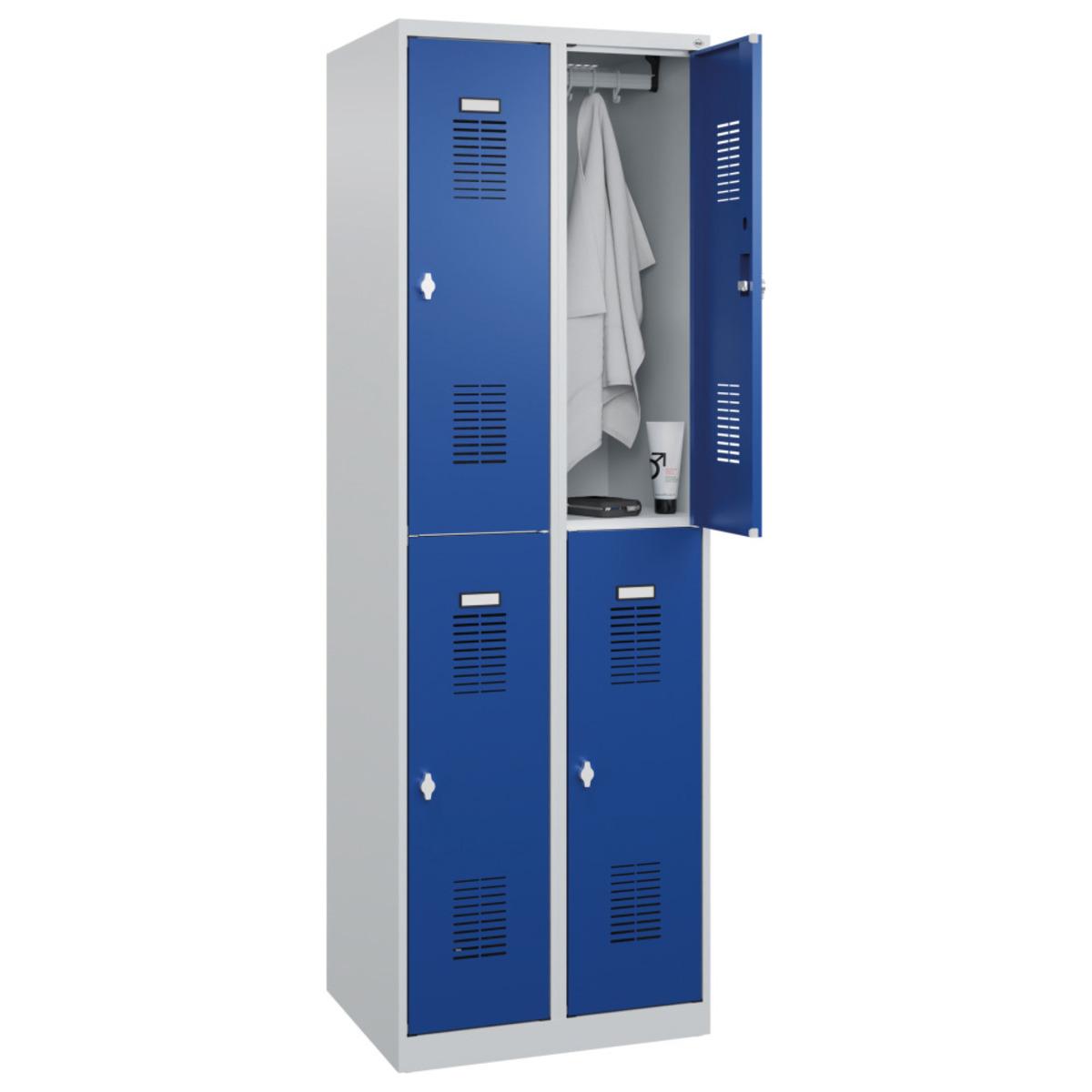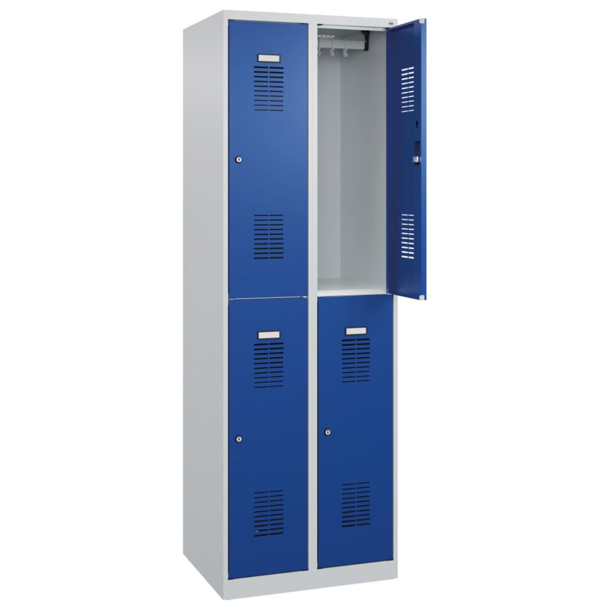 Auswahl: C+P Spind Basis PLUS, doppelst., 2x2 Fächer, Drehriegel, grau/blau, 1850x600x500mm