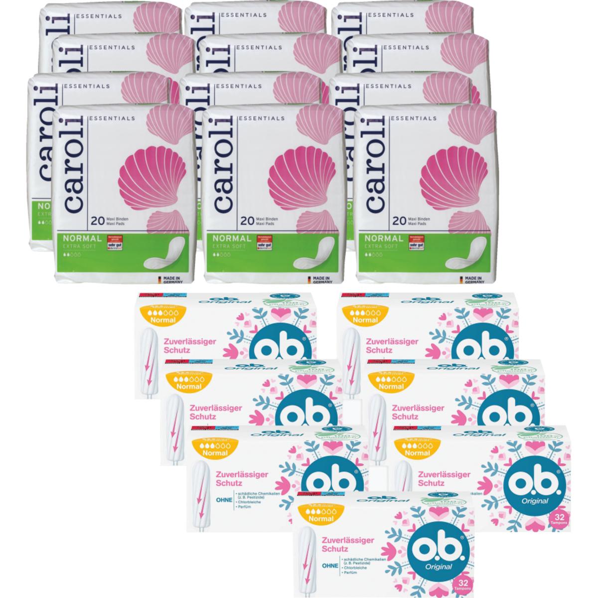 Auswahl: Damenhygiene Nachfüll-Set, 240x Caroli Damenbinde normal, 224x o.b. Tampons