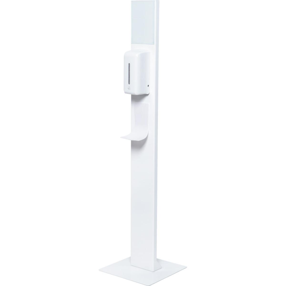Handdesinfektionsständer für Eingangsbereiche, in Ausstellungsräumen, Einzelhandelsketten oder auf Messen. Inklusive DIN A5 Inforahmen aus Acrylglas für firmenindividuelle Informationen.