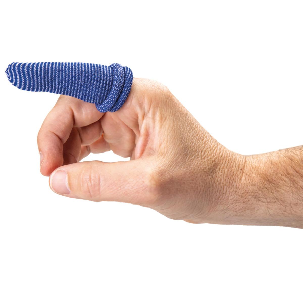 Detectaplast Textil-Fingerling zum Schutz von Fingern oder Fixieren von Pflastern, schmutz- und staubabweisend, schnell visuell erkennbar.