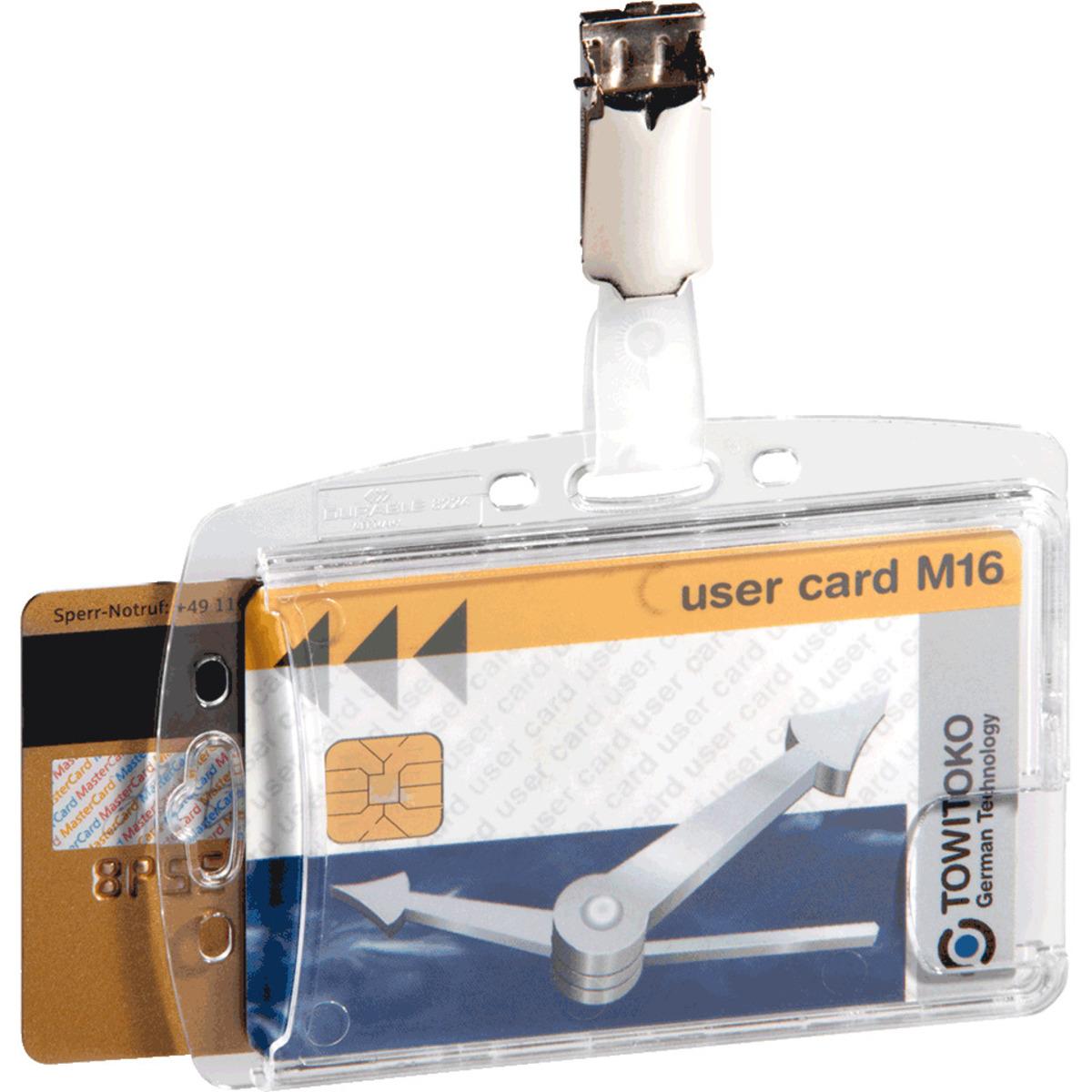 DURABLE Doppelbox für 2 Betriebsausweise, schützt Magnetstreifen und Speicherchips von Betriebs- und Sicherheitsausweisen, mit drehbarem Clip und Daumenausstanzung für schnellen Zugriff, wahlweise im Hoch- oder Querformat nutzbar, kombinierbar mit Textilband oder Ausweiskartenhalter