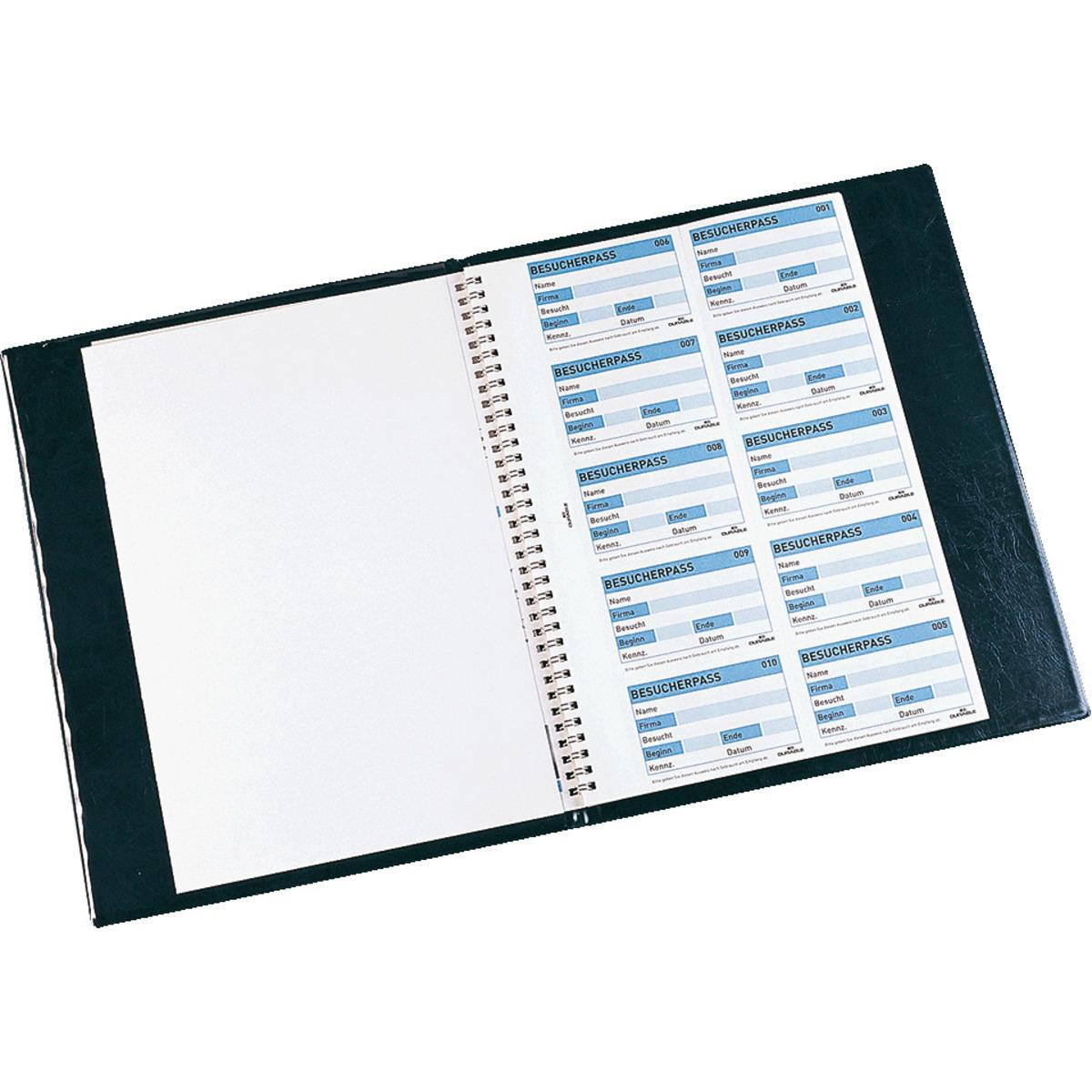 DURABLE Besucherbuch mit hochwertigem Einband in Lederoptik, mit mikroperforierten Einsteckschildern zum praktischen herraustrennen, einfache Integration für passendes Namensschild