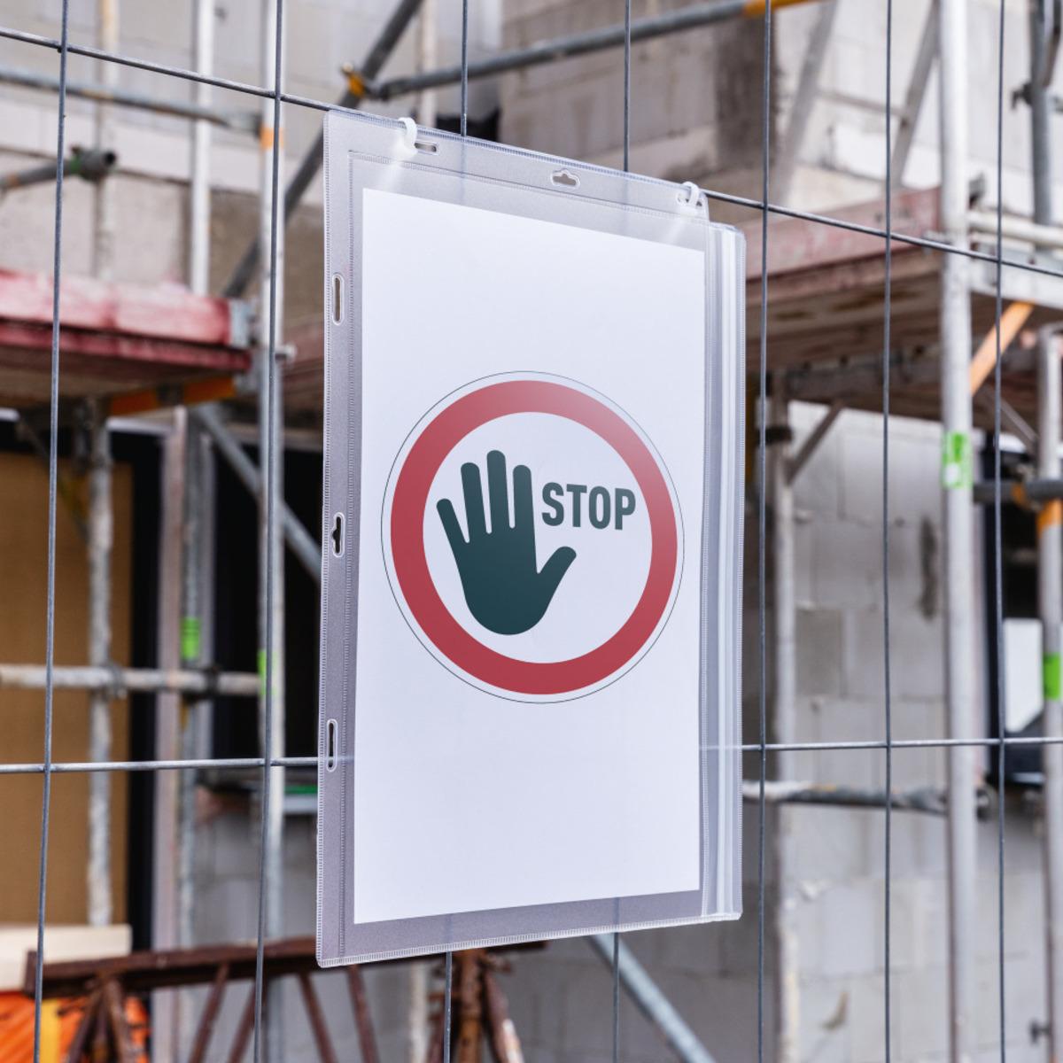 DURABLE Plakattasche, mit Kabelbinder, Fixierung der Sichttasche durch beiliegende Kabelbinder in dafür vorgesehene Lang- oder Eurolöcher. Sehr hoher Schutz der Einlagen durch wasserdichten Druckverschluss, UV-stabil