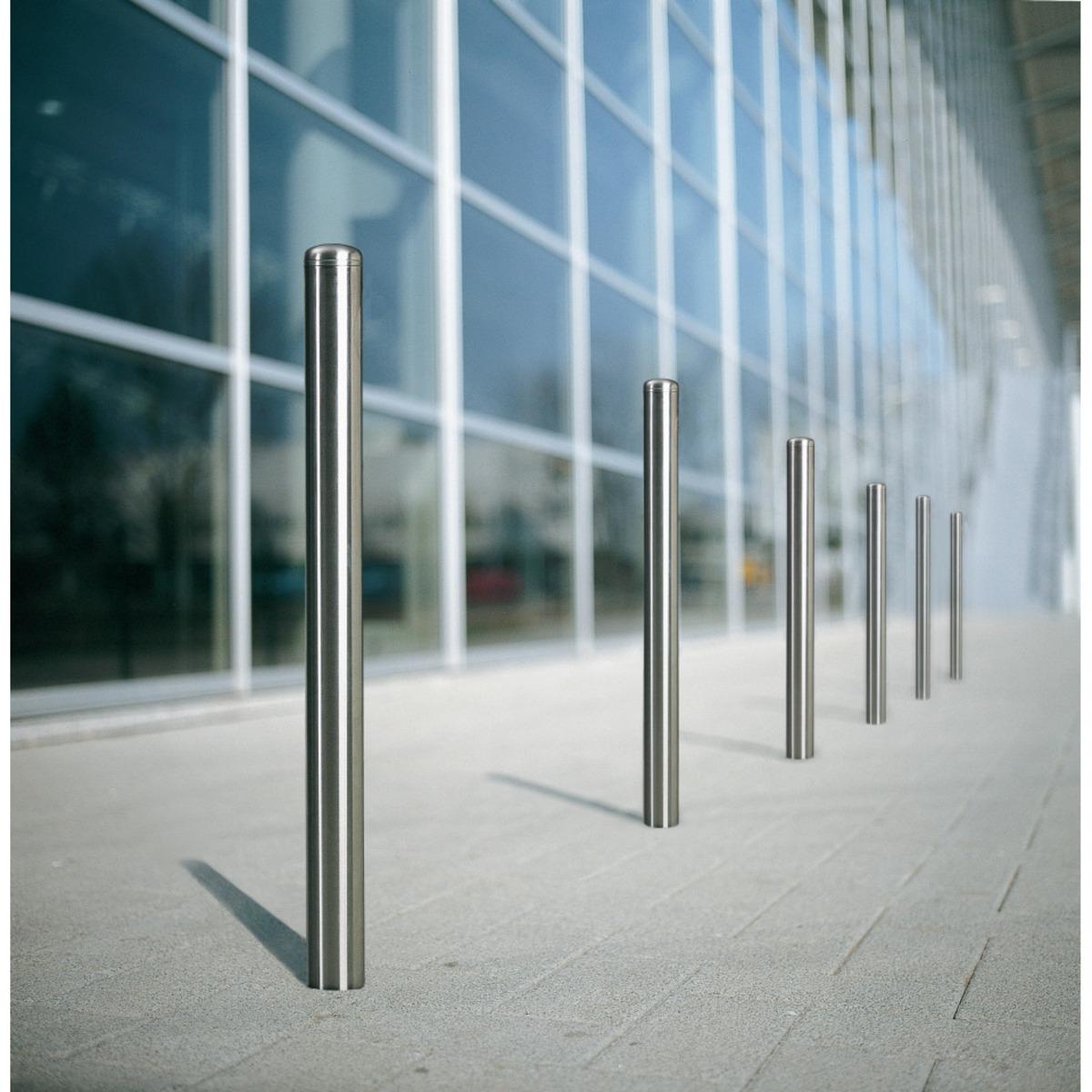 Absperrpfosten mit Edelstahlrundkopf für repräsentative Bereiche, korrorionssicher und wartungsarm