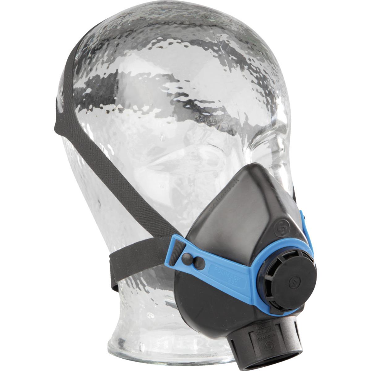 Klassische Halbmaske Polimask 330 mit Rundgewinde-Filteranschluss zum Schutz vor Gasen, Dämpfen und Partikeln, mit Ausatemventil und Unterkinnhalt, stufenlos verstellbare Bebänderung