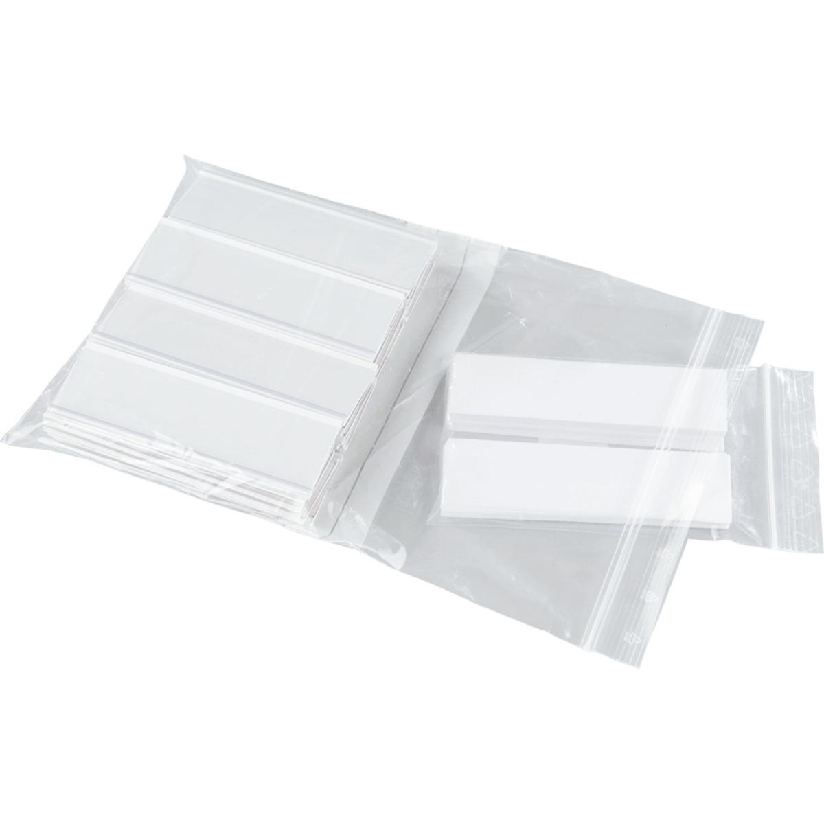 Selbstklebende Etikettenhalter zum Einschieben von Papieretiketten. Ideal zur Kennzeichnung, falls der Untergrund nicht für magnetische Haftung geeignet ist.