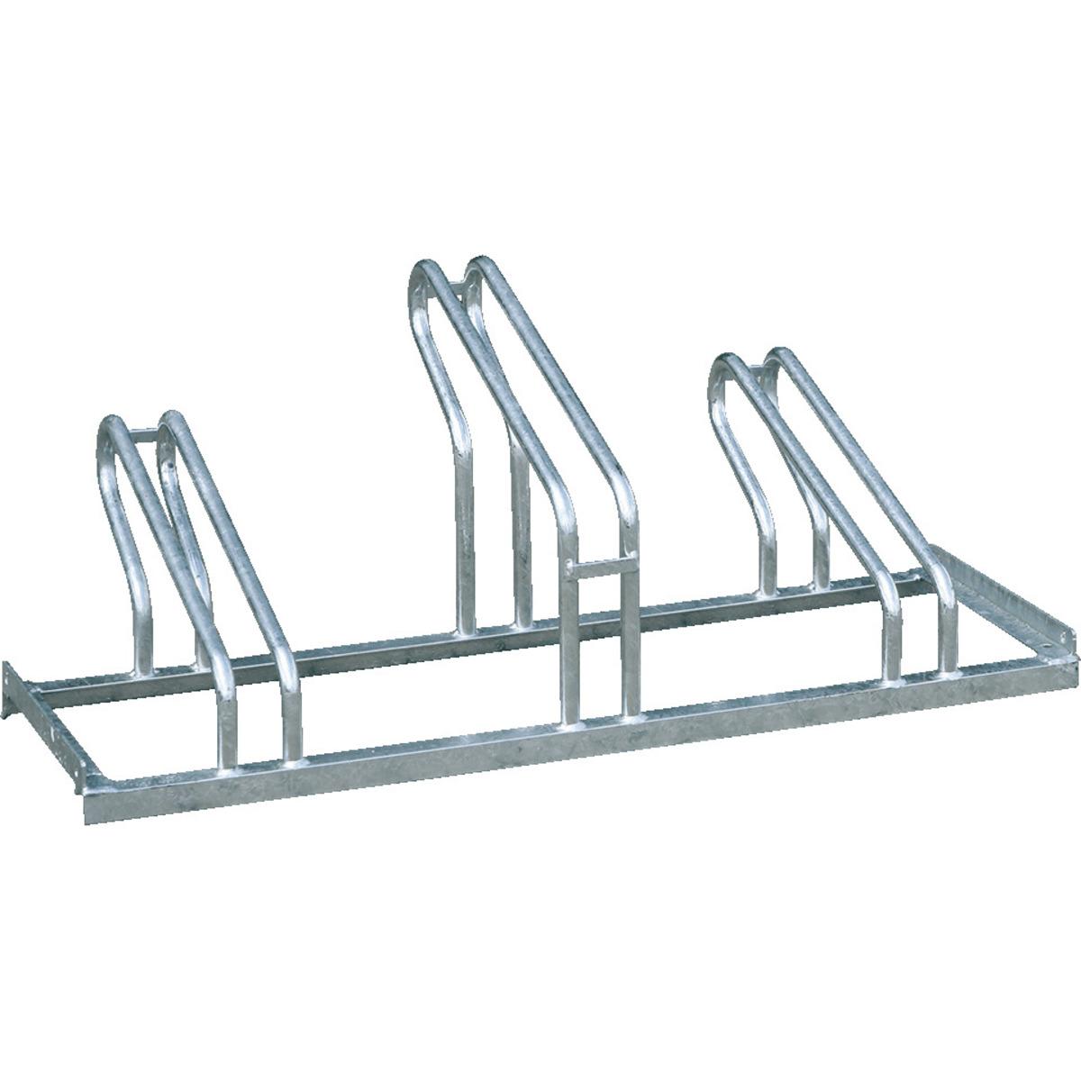 Fahrradständer City zum platzsparenden Parken von Fahrrädern bis zu einer Reifenbreite von 45 mm, mit Stellbügeln in wechselnder Hoch-Tief-Stellung, inklusive Befestigungsmaterial (4 Schrauben und 4 Dübel) zur Bodenbefestigung