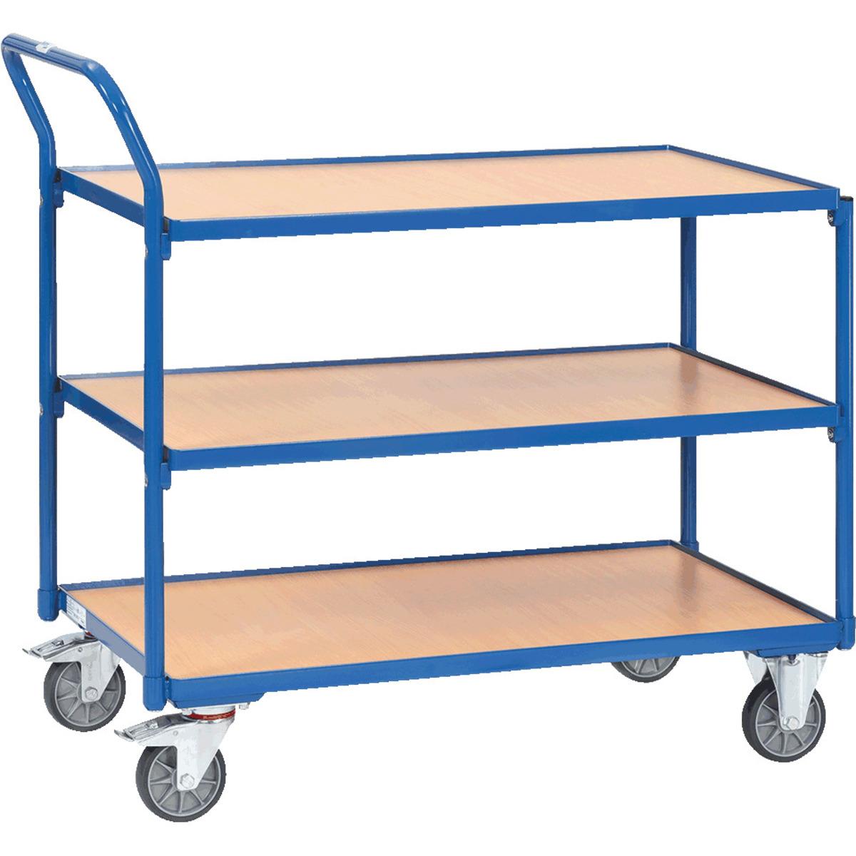 Auswahl: fetra Tischwagen, 3 Böden, blau, Stahl, Ladefläche 1000x600mm, Tragkraft 300kg, 49kg