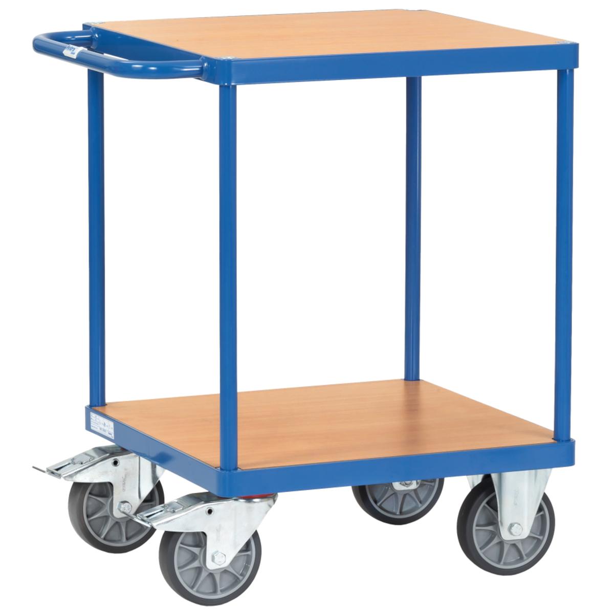 fetra® Tischwagen für den schnellen Transport im Betrieb oder als zusätzlicher mobiler Arbeitstisch bzw. Werkbank. Der Wagen verfügt über einen hochstehenden Griff, eine Schraubkonstruktion, 2 Lenk- und 2 Bockrollen, Naben mit Rollenlager und Feststeller an den Lenkrollen.