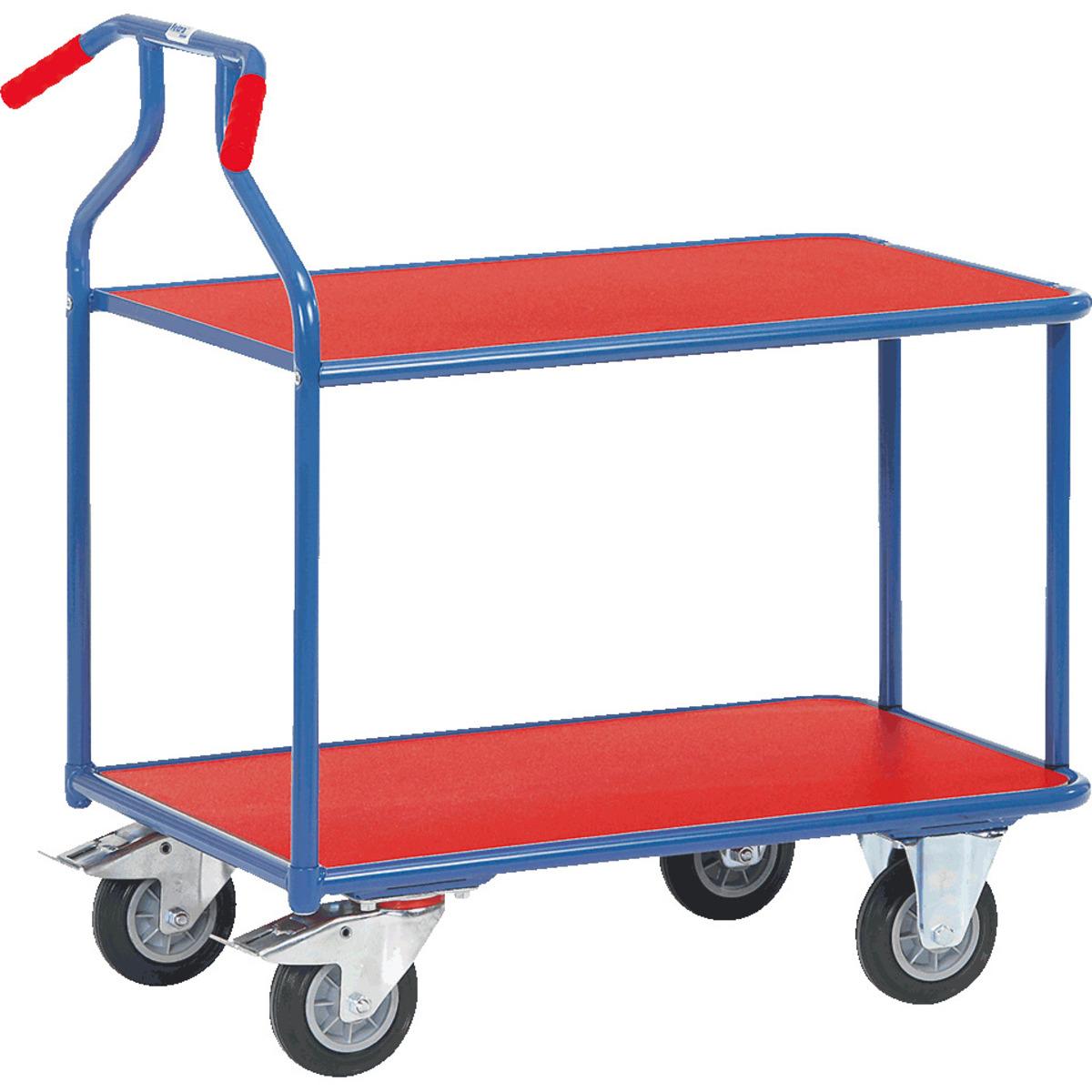 Stabiler fetra Transportwagen Optiliner mit ergonomischer Griffhaltung, 2 Plattformen, 2 Lenk- und 2 Bockrollen, Vollgummibereifung, Naben mit Rollenlager, Feststeller an den Lenkrollen