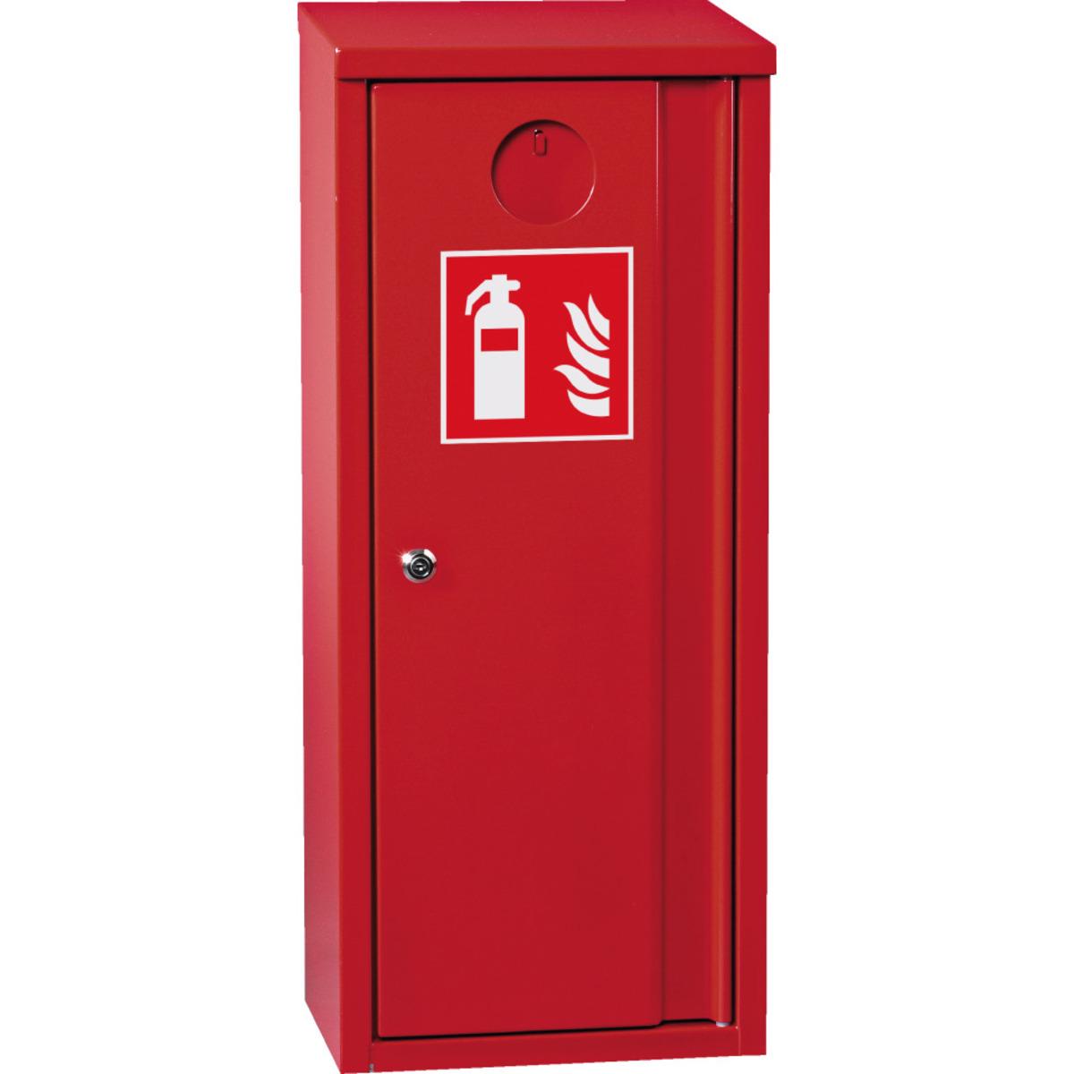 Auswahl: Feuerlöscher-Behälter, für Löscher bis 12kg, mit Zylinderschloß, rot, Stahlblech