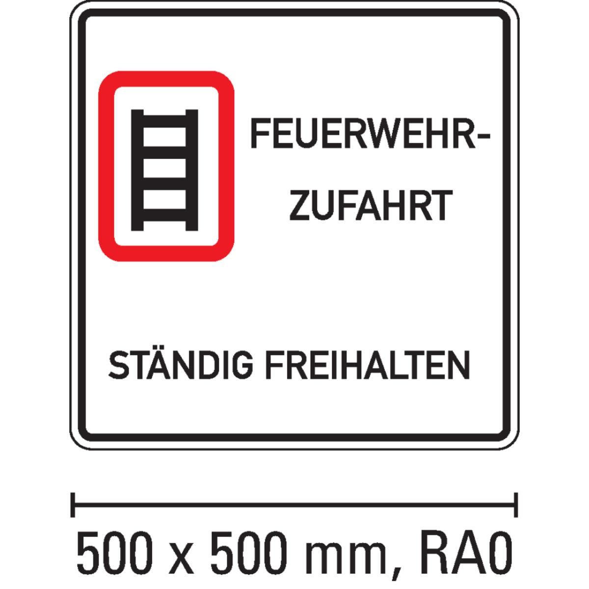 Auswahl: Hinweisschild Feuerwehr-Zufahrt freihalten, Aluminium RA0, reflektierend, 500x500mm