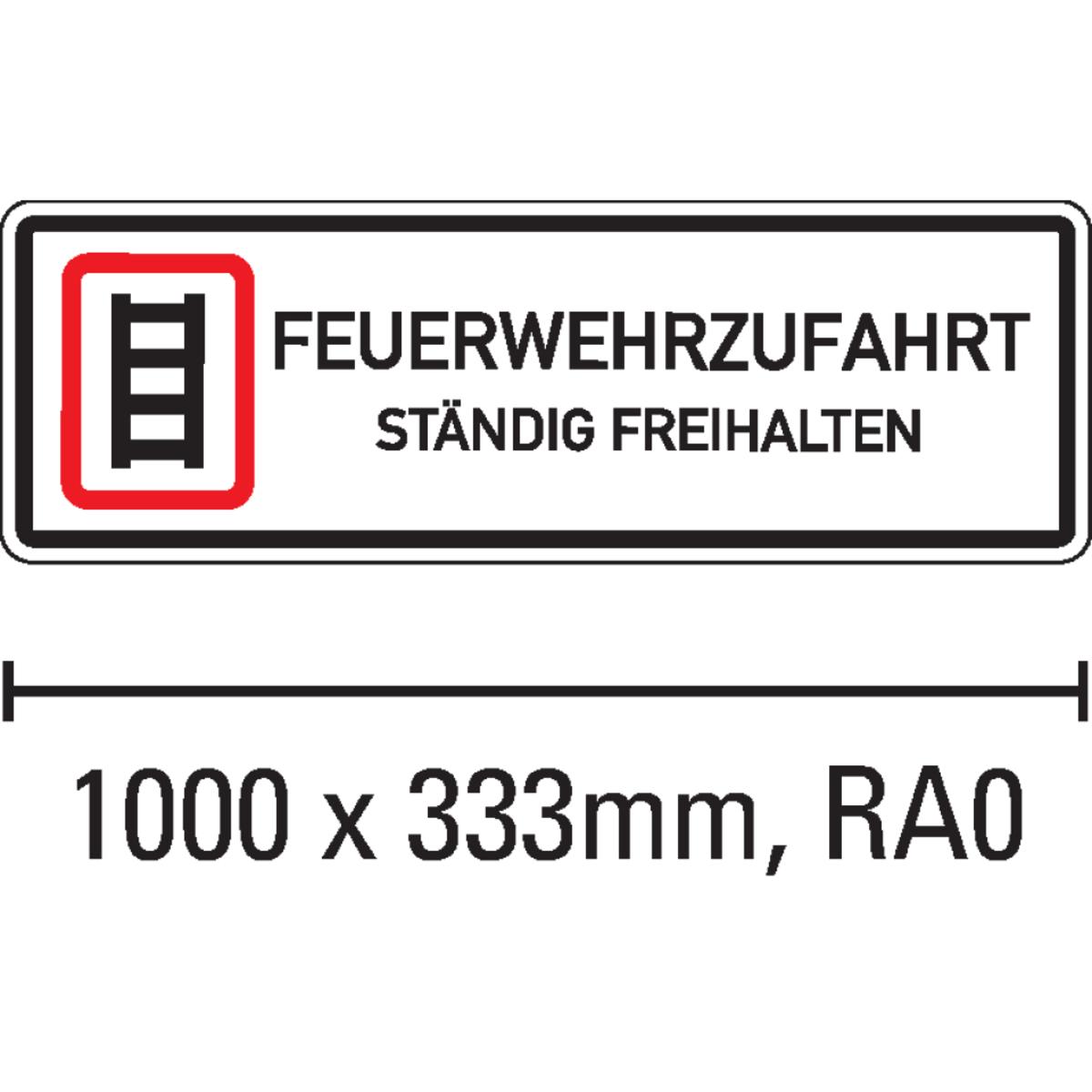 Auswahl: Hinweisschild Feuerwehr-Zufahrt freihalten, Aluminium RA0, reflekt., 1000x333mm