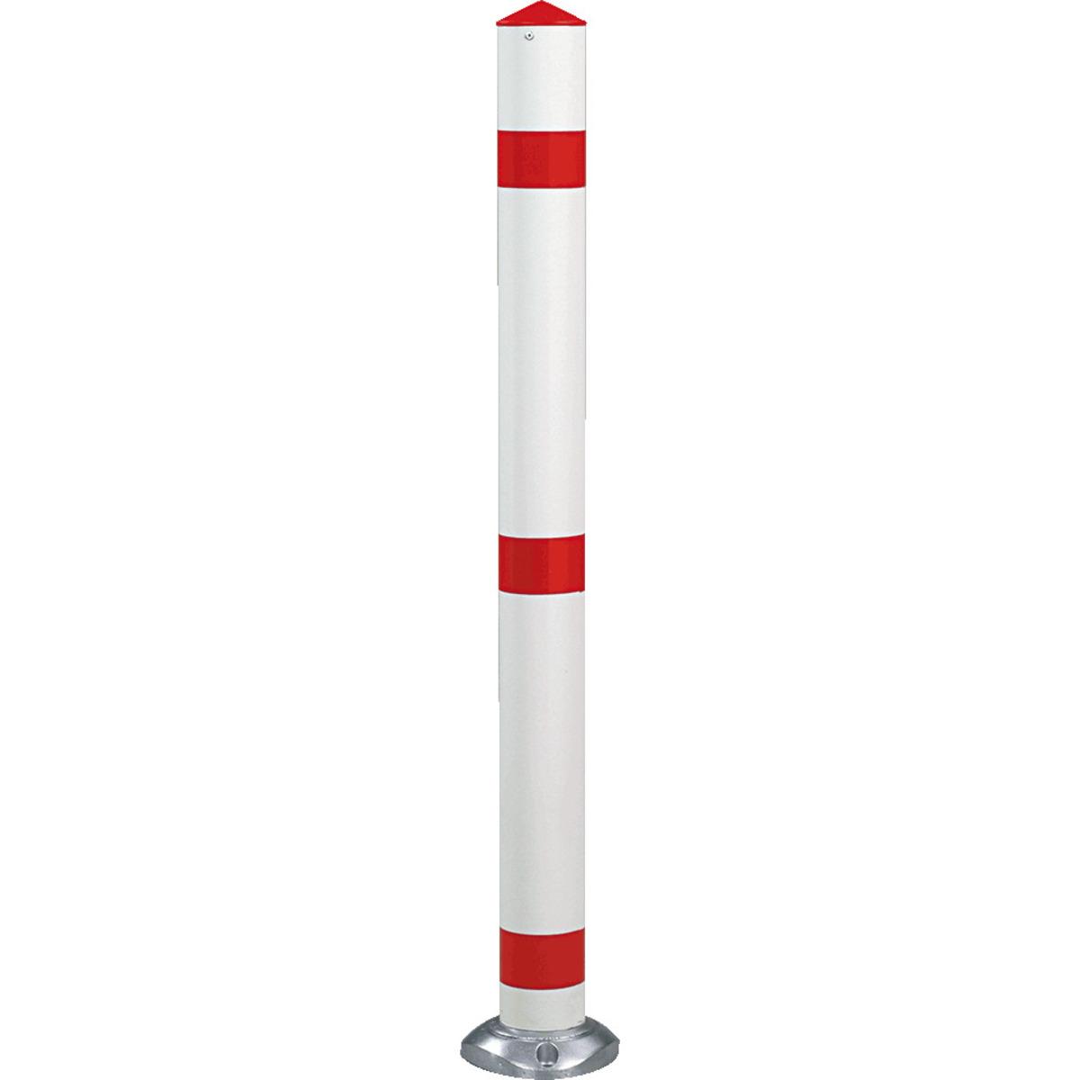 Flexibler Absperrpfosten Madrid zum Aufdübeln, ideal für begrenzte Rangierbereiche oder enge Kurven, gibt beim Anfahren nach und richtet sich durch einen Federmechanismus wieder auf, vorgebohrte Bodenplatte