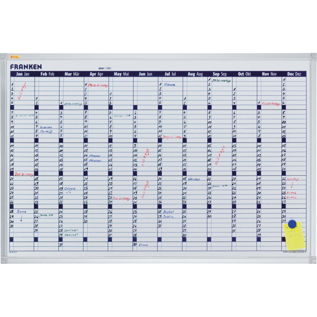 FRANKEN Jahresplaner Xtra Line, 12 Monate, Umweltfreundlich, da jedes Jahr neu verwendbar. Schreibtafeloberfläche, inklusive Ablageschale und Montagematerial, Eindruck in Deutsch und Englisch