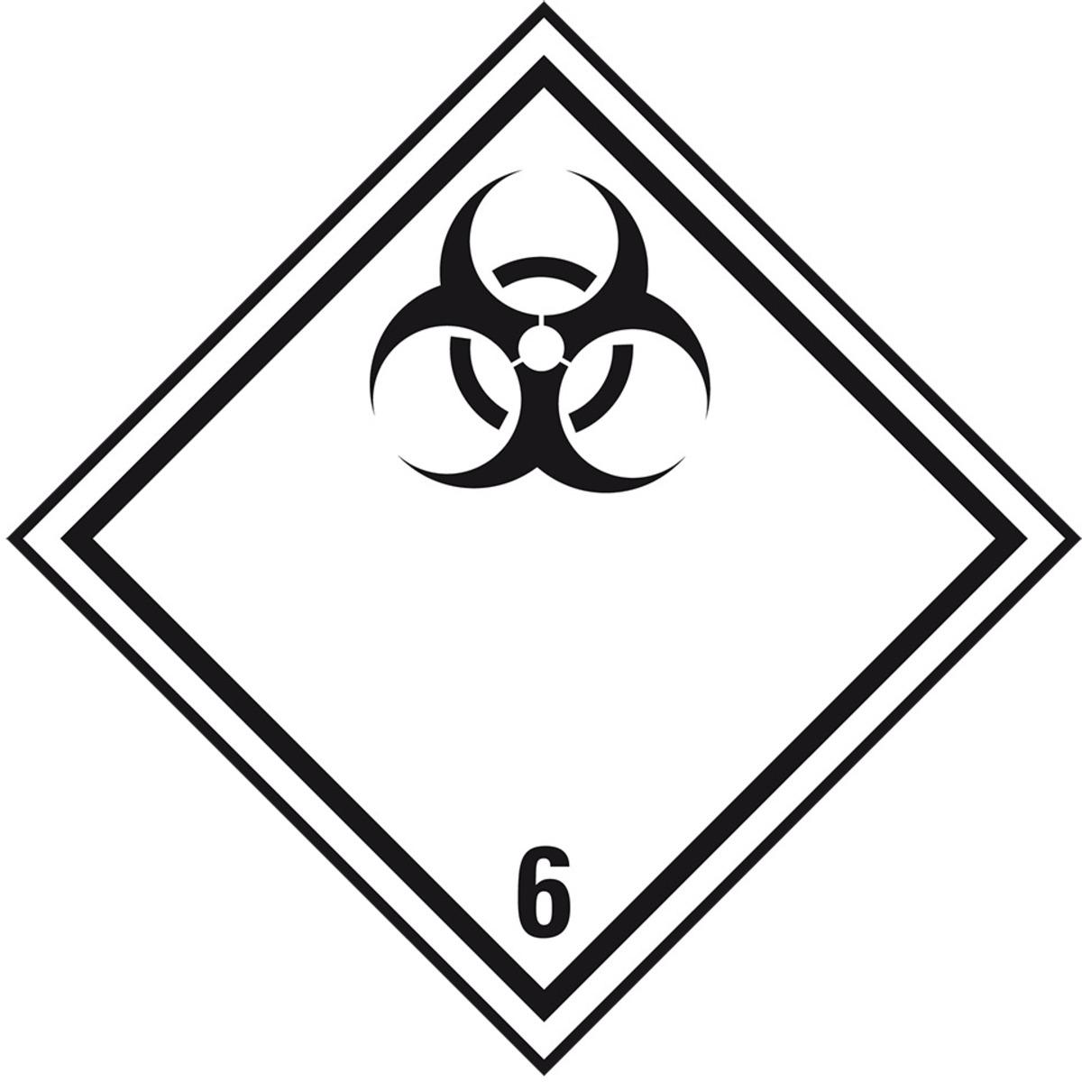 Informieren Sie mit dem Gefahrgutzettel Klasse 6.2 - "Ansteckungsgefährliche Substanzen" Spediteure und Empfänger über Inhalt und Handhabung der Versandstücke, um die Sicherheit des Gefahrguts und der beteiligten Personen zu gewährleisten.