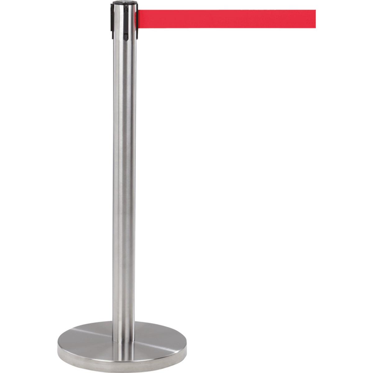 Auswahl: Gurtabsperrpfosten, Edelstahl gebürstet, Ø 65mm, Gurt rot, 2, 3m, H 990mm