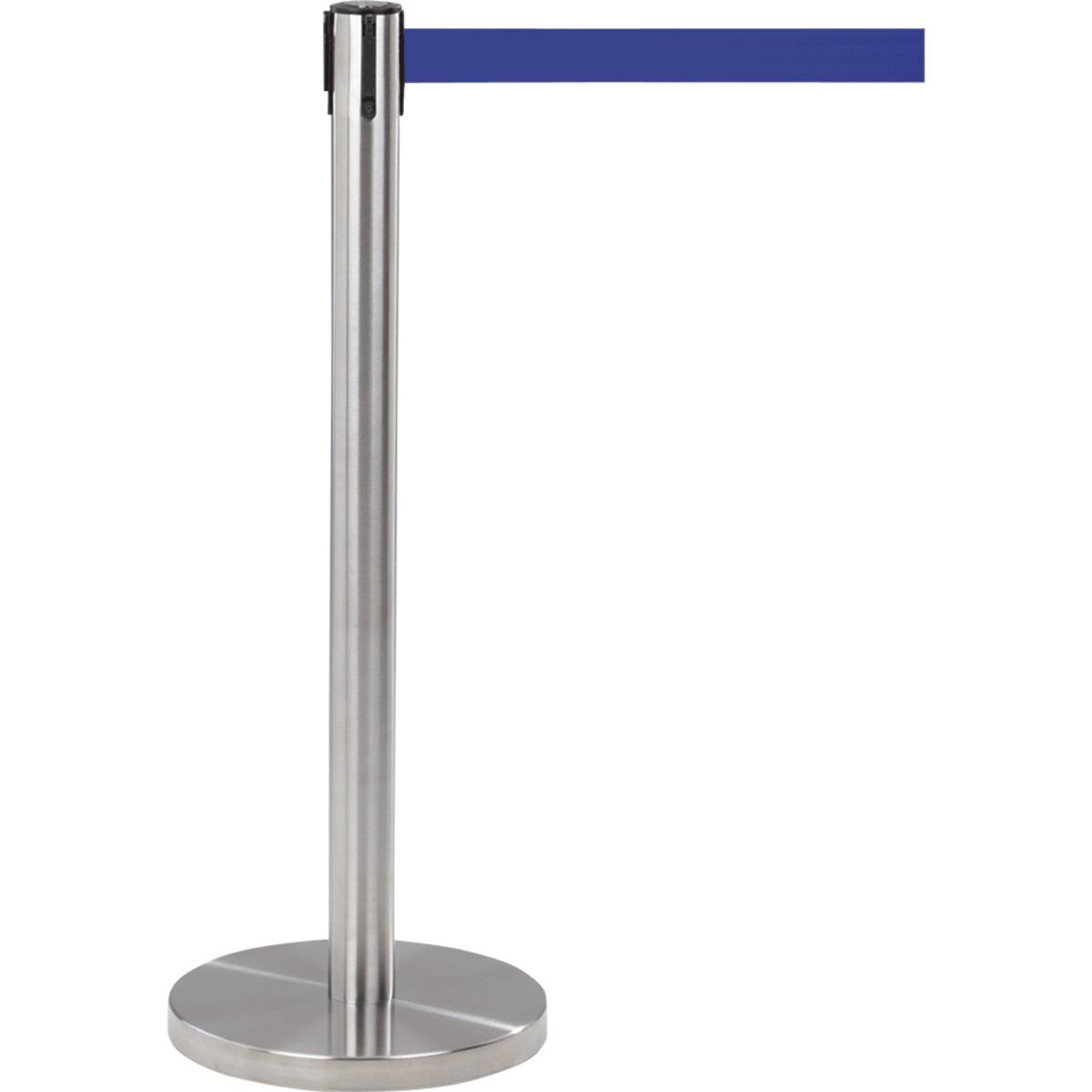 Gurt-Absperrpfosten Edelstahl zum schnellen Absperren oder Leiten von Besuchern, stufenlos ausziehbar, Auszugslänge bis zu 2,3 Meter, Aufrollautomatik und Panikverschluss, ideal für repräsentative Bereiche