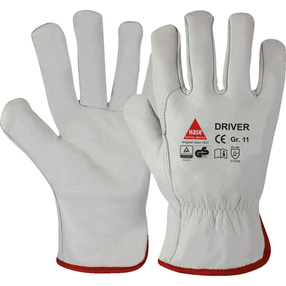 Auswahl: Arbeits-Schutzhandschuh Driver, Kat.II, grau, Rindnappaleder, 250mm, Größe 9