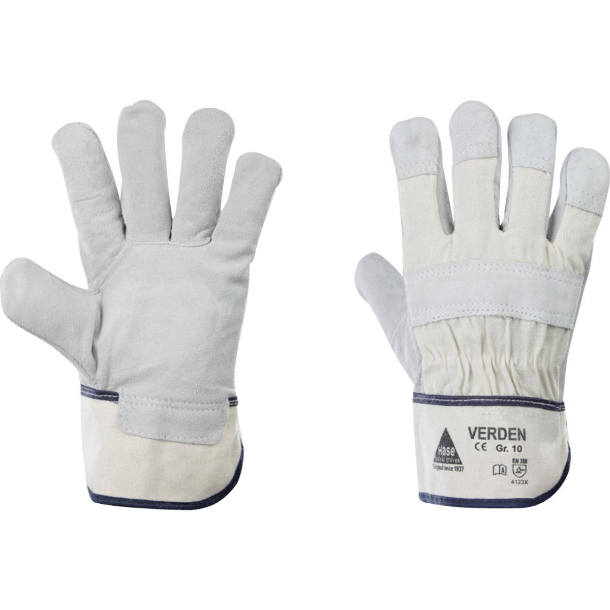 Auswahl: Arbeitshandschuh Verden, Kat.II, grau/natur, Rindspaltleder, 260mm, Größe 10