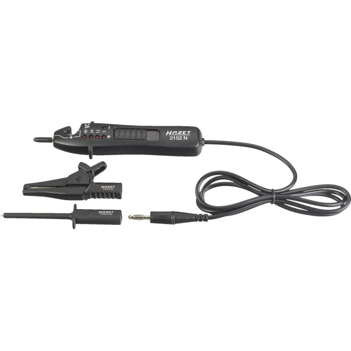Das 3-teilige HAZET® Spannungsprüfer-Set mit Prüfspitze, bestehend aus Grundgerät mit Prüfspitze, Abgreifklemme und Krokodilklemme, Spannungsbereich von 3 - 48 Volt, ideal für alltägliche elektrische Prüfarbeiten