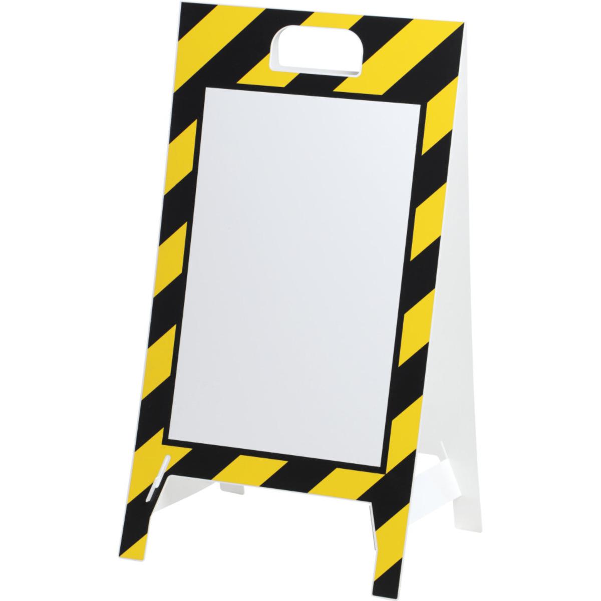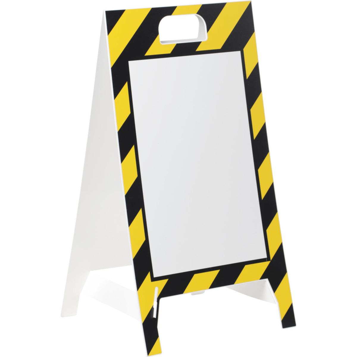 Der Blanko Aufsteller zum Selbstbeschriften mit umlaufender Warnschraffur dient zur Absicherung von Gefahrenstellen, einfache Handhabung beim Auf- und Abbau, platzsparend zusammenklappbar und leicht zu transportieren, für den Innen- und begrenzten Außeneinsatz.