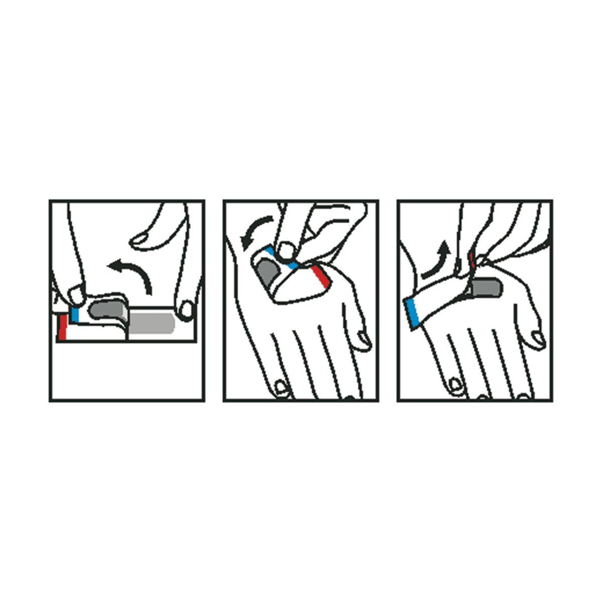 Elastische, wasserfeste Pflaster, die einhändig verklebt werden können. Einzeln eingesiegelt.