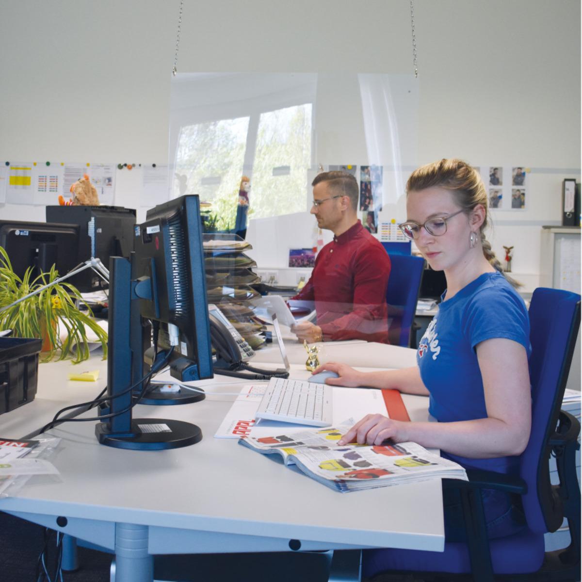 Transparente Infektionsschutzscheibe oder hygienische Barriere zum Aufhängen, ideal für Bereiche mit viel Publikumsverkehr
