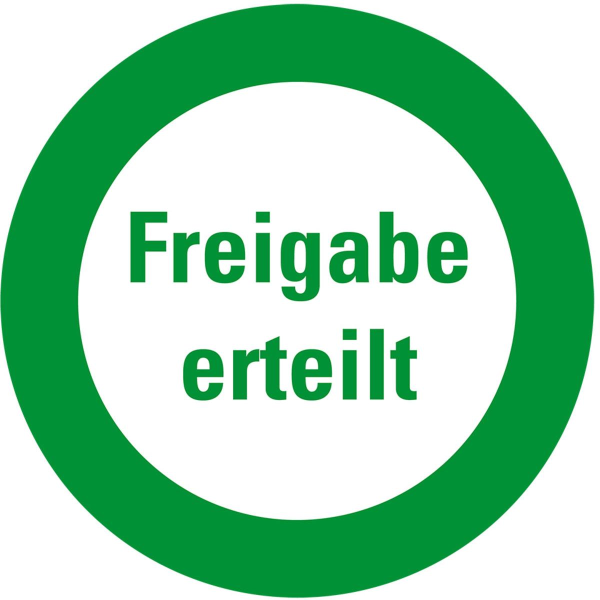 Infoplakette "Freigabe erteilt" Freigabe erteilt Bogen Dokumentenfolie
