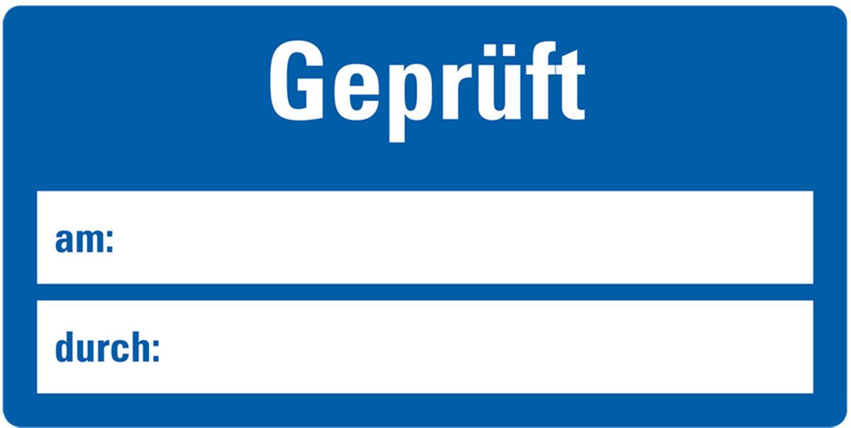 Infoplakette zum selbstbeschriften "geprüft am:, durch:"