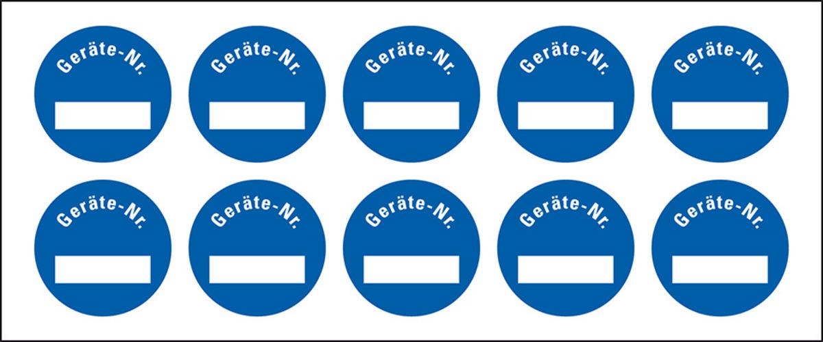 Auswahl: Etikett Geräte-Nr., blau, Hochleistungsfolie, Klappkaschierung, Ø 40mm, 10/Bogen