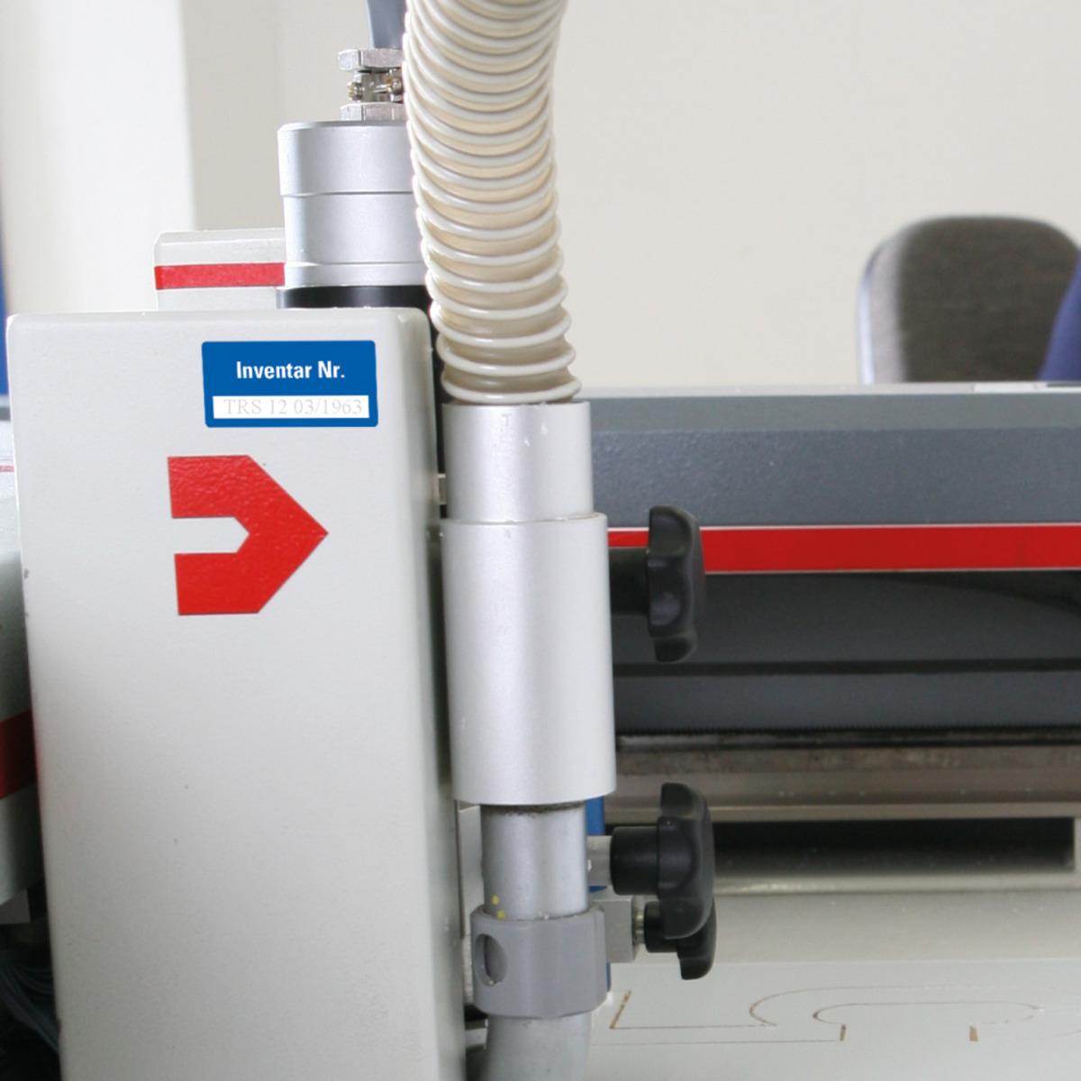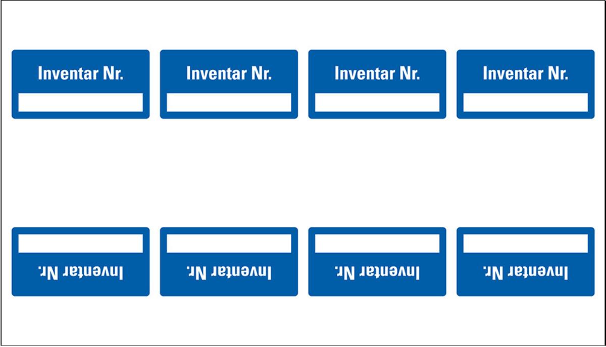 Auswahl: Inventaretikett Inventar Nr., blau, 3M Scotchcal, Klappkaschierung, 40x20mm, 8/Bogen