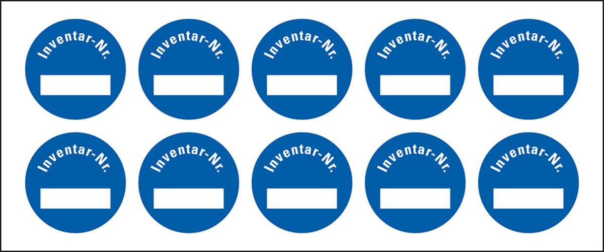 Auswahl: Inventaretikett Inventar Nr., blau, 3M Scotchcal, Klappkaschierung, Ø 40mm, 10/Bogen