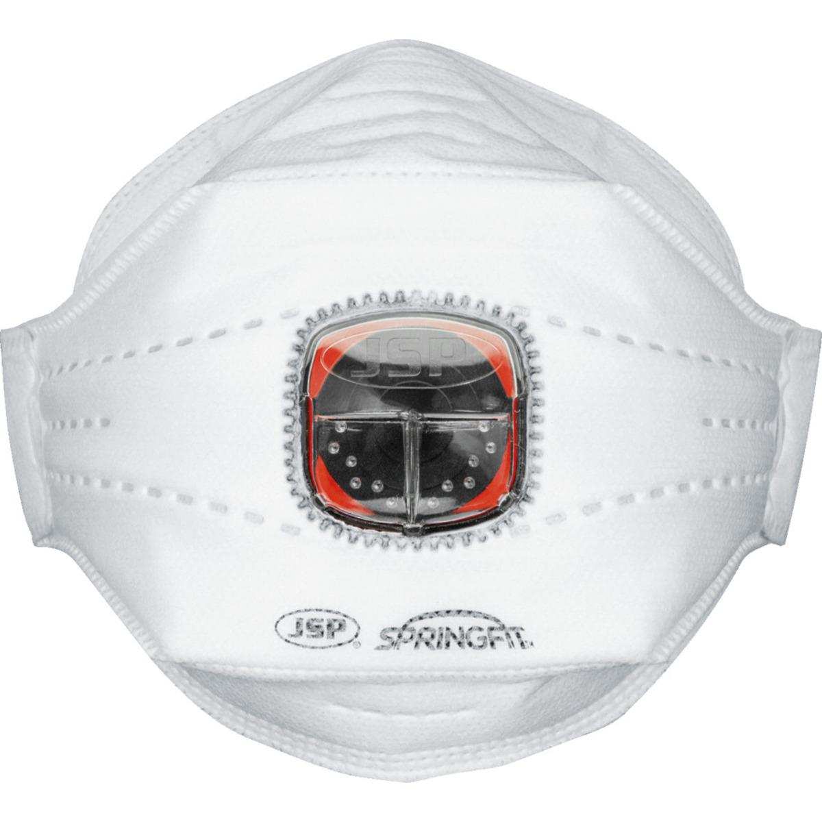 Partikelfiltrierende Einweg Feinstaubmaske JSP® SPRINGFIT™ Serie 400 für zuverlässigen Schutz vor luftgetragenen Gefahren, Faltdesign mit Innenskelett, hitze- und feuchtigkeitsreduzierendes Ausatemventil