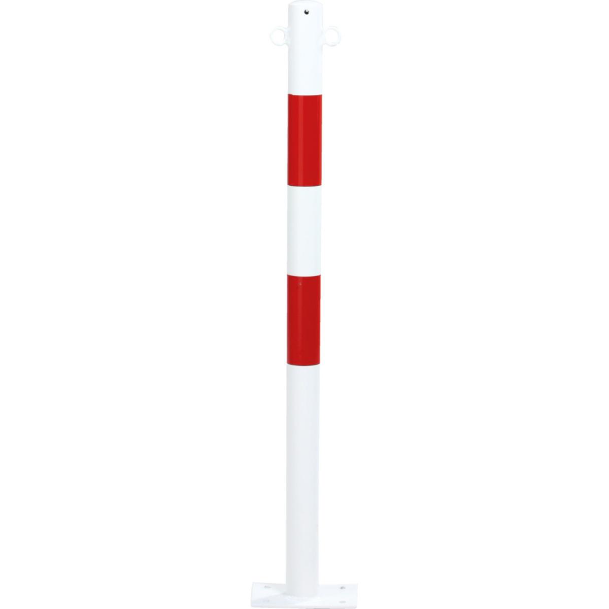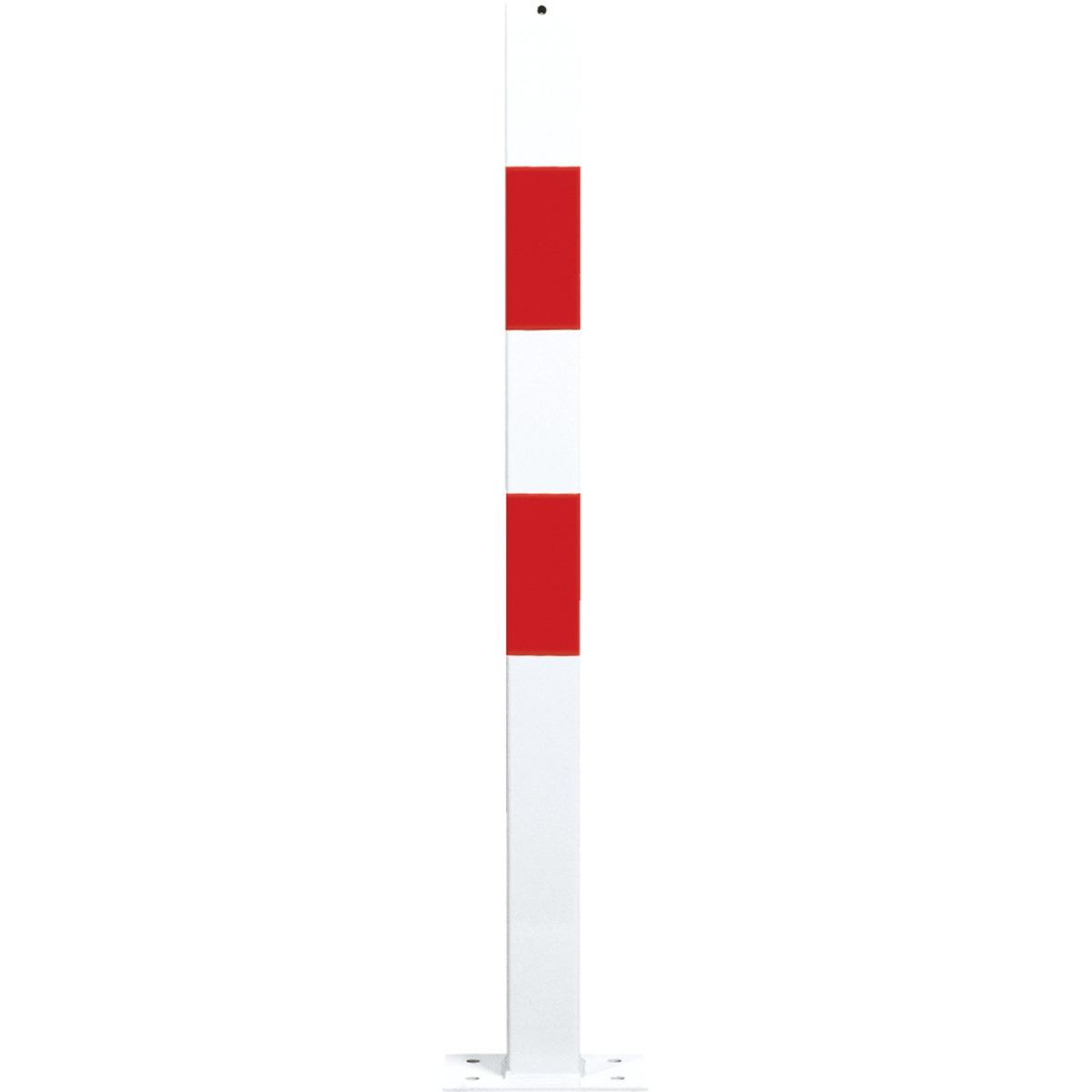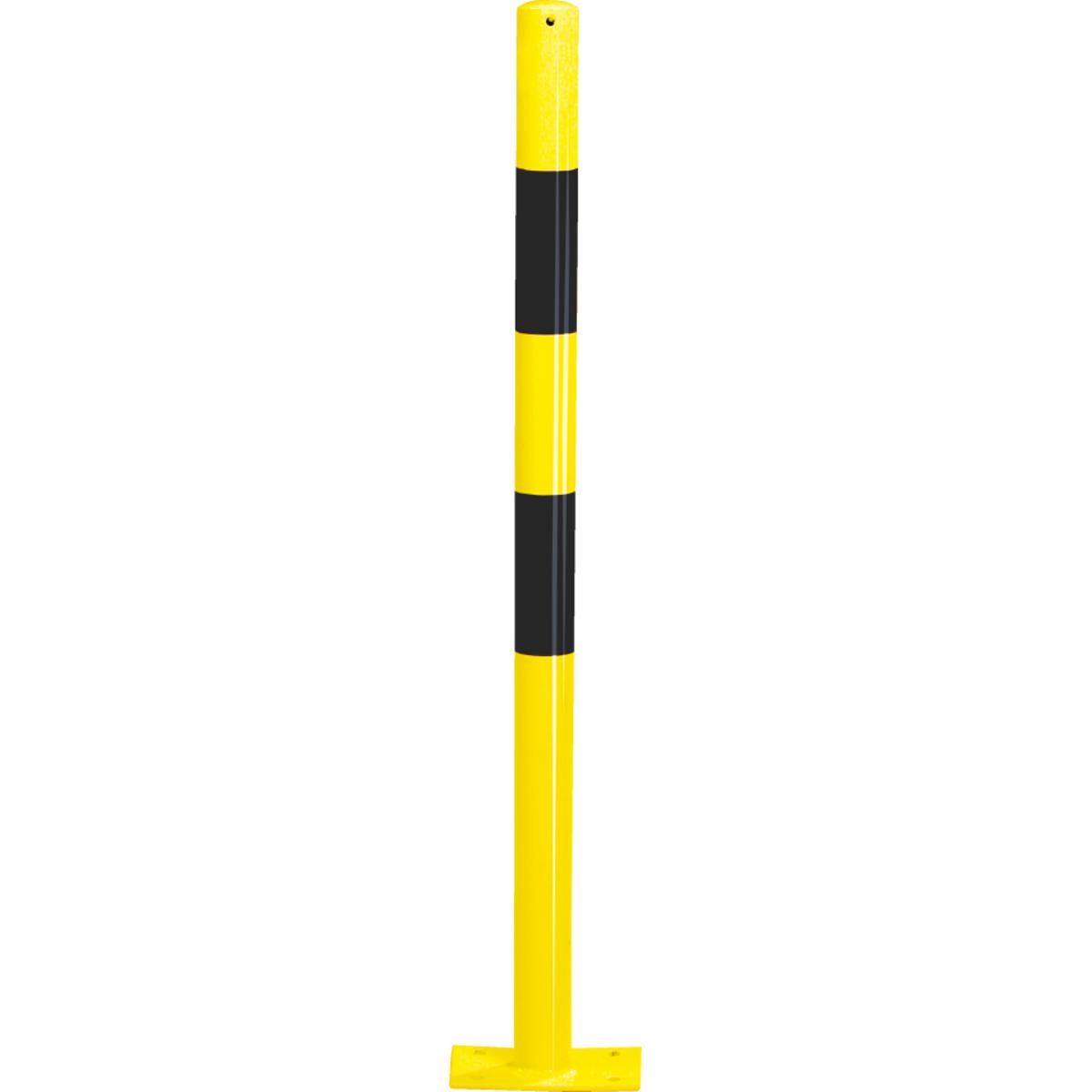 Absperrpfosten Bern zum Aufdübeln für den Innen- und Außeneinsatz, zur Sicherung von Zufahrten und Parkplätzen, als Ramm- und Anfahrschutz oder zur Begrenzung in Lager- oder Produktionshallen, Bodenplatte mit 4 Bohrungen (Ø 12,5 mm), Befestigungsmaterial separat mitbestellen