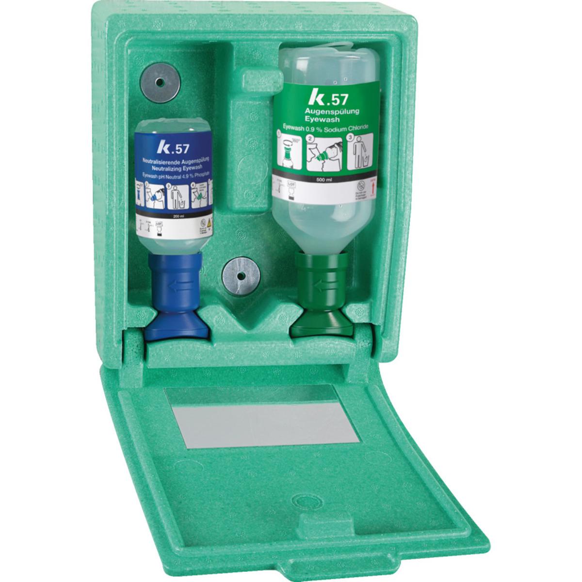 Auswahl: K.57 Augen-Notfallstation, geschlossen, m. 1x200ml/pH Neutral, 1x500ml/Kochsalzlös.
