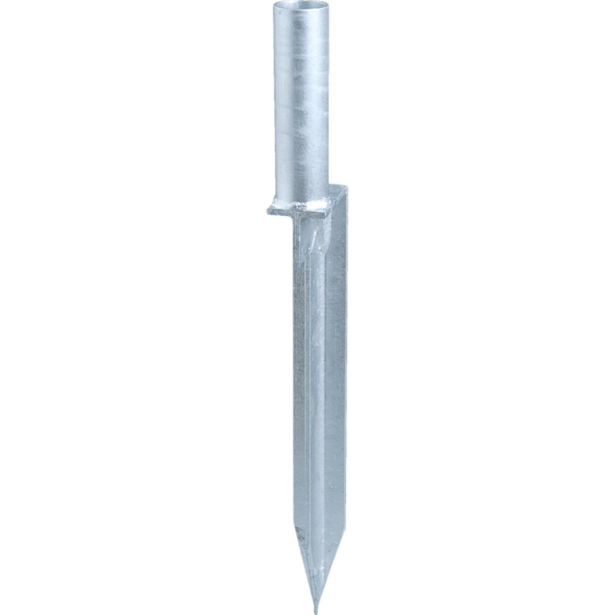 Einschlagspitze für Absperrpfosten mit Hülse für den Pfostenaufsatz