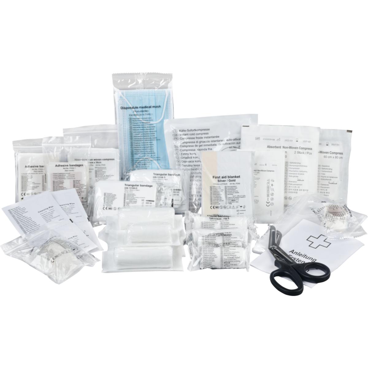 Hygienisch verpacktes Nachfüllset für Erste-Hilfe-Koffer, -Schränke und Verbandkästen gemäß aktuellster Norm.