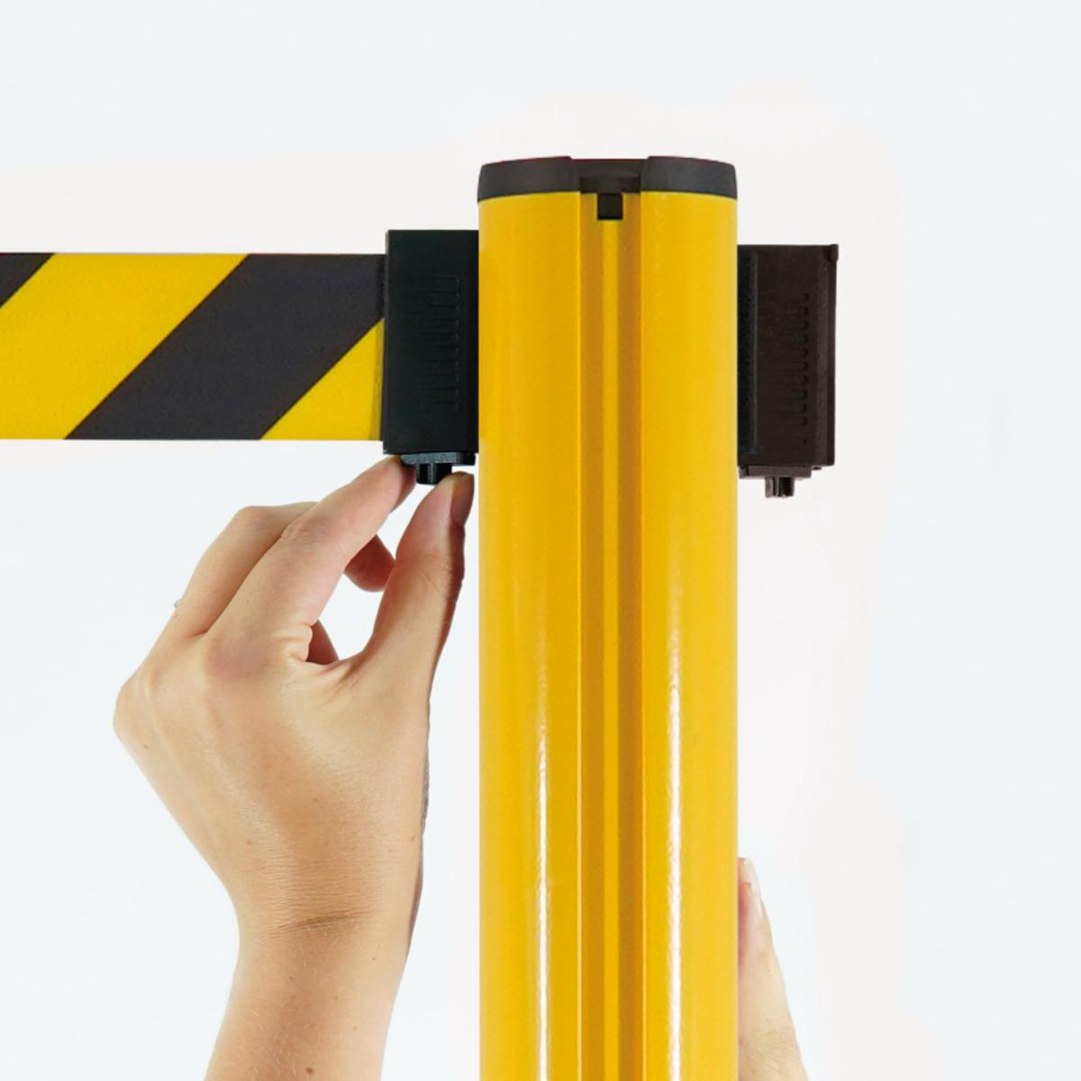 Auswahl: K.57 Gurtpfosten, gelb, Aluminium, gelb/schwarz schraffiert, 50mm, 2, 6m, 990mm