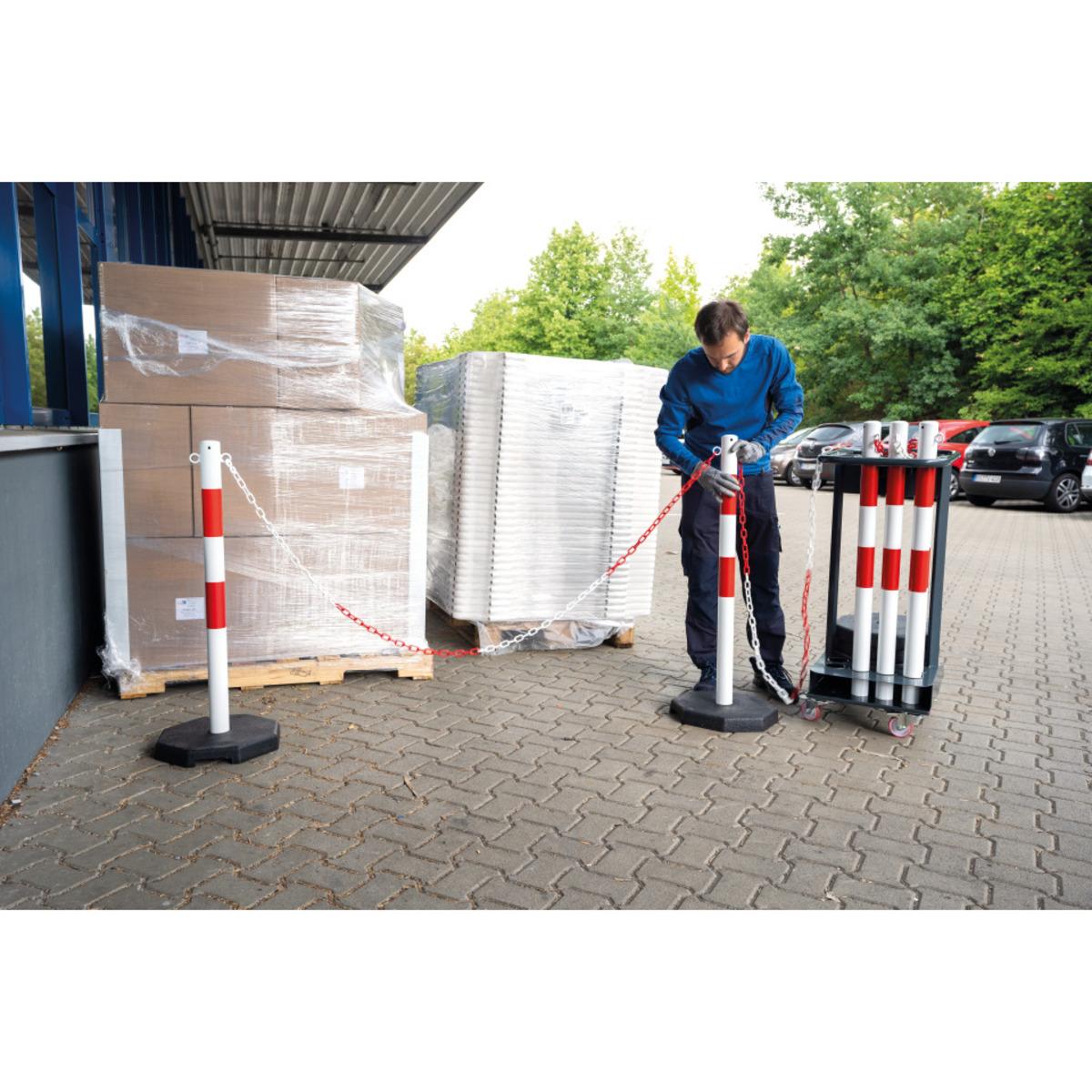 Auswahl: K.57 Kettenpfosten-Set Poly, Caddie, 6 Pfosten, rot/weiß, 1m, Fußplatten, Haken, Kette