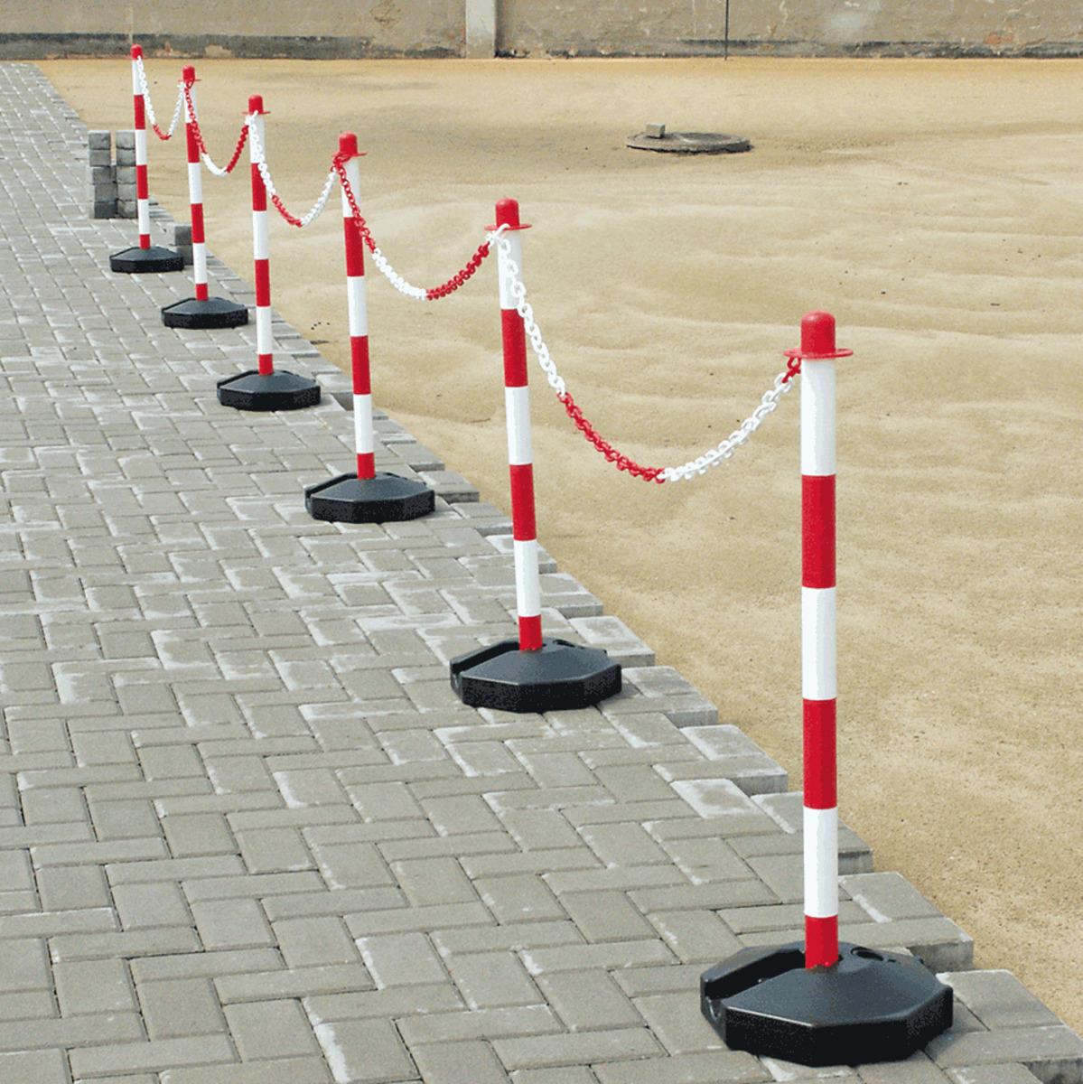 Auswahl: K.57 Klapppfostenset, befüllt, rot/weiß, uv-beständig, H 870mm, Fuß Ø 300mm, 6-tlg