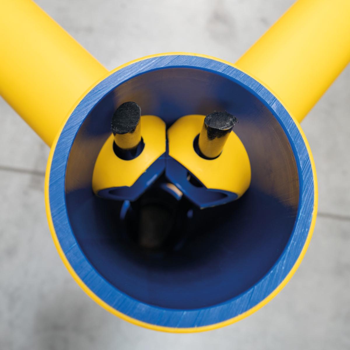 Einfache Montage durch das geringe Gewicht der einzelnen Komponenten. Bei Aufprall verformt sich das Geländer und absorbiert einen Großteil der Aufprallenergie. Danach kommt es wieder in seine ursprüngliche Form zurück.